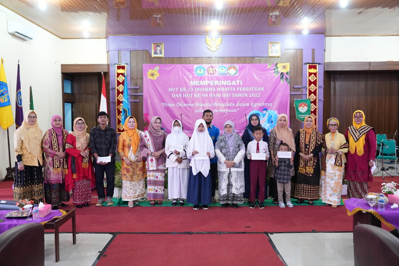 (Unila): Darma Wanita Persatuan (DWP) Universitas Lampung (Unila) adakan peringatan Hari Ulang Tahun (HUT) ke-23 DWP Unila dan Hari Ibu ke-94, Kamis, 22 Desember 2022 di Aula K FKIP Unila.