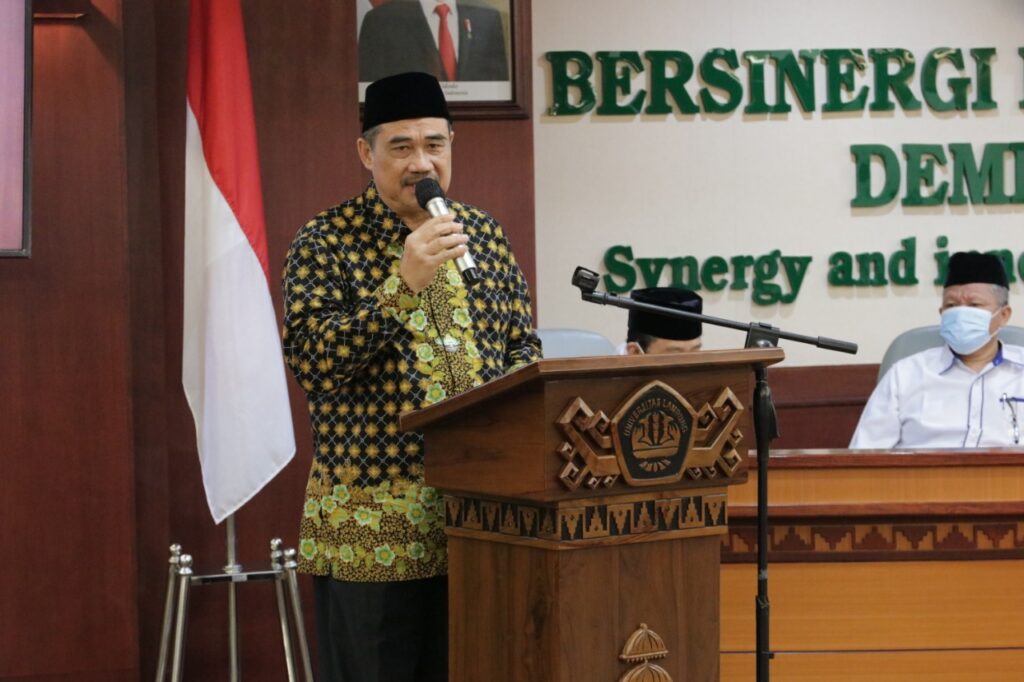 Rektor Unila Prof. Dr. Karomani, M.Si., dalam sambutannya menyampaikan ucapan selamat Idulfitri 1442 hijriah.