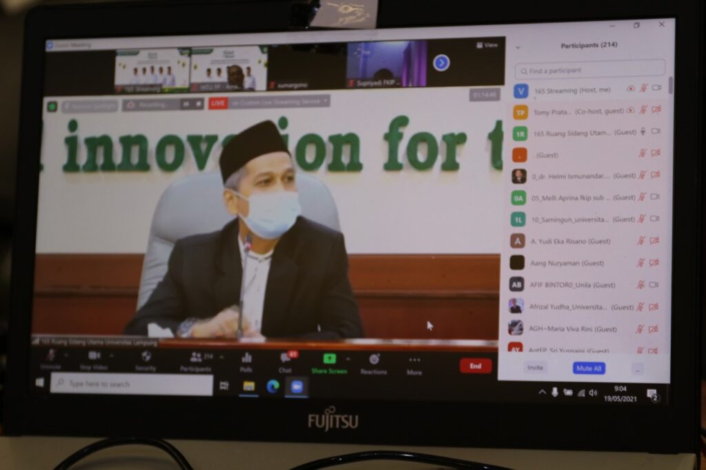 (Unila): Universitas Lampung (Unila) menyelenggarakan halalbihalal 1442 Hijriah dan silaturahmi virtual bersama sivitas akademika Unila melalui aplikasi Zoom, Rabu, 19 Mei 2021.