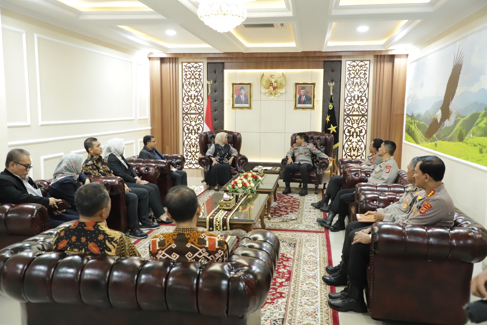 Kehadiran rombongan ini diterima secara langsung Kapolda Lampung Irjen. Pol. Dr. Akhmad Wiyagus, SIK., M.Si., MM. didampingi Wakapolda Brigjen. Pol. Dr. Umar Effendi, M.Si., Irwasda Polda Lampung Kombes Pol Sustri Bagus Setiawan, Dirreskrimsus Polda Lampung Kombes. Pol. Donny Arief Praptomo, Karo SDM Kombes. Pol. Riyadi Nugroho, SIK., dan Kabid Humas Kombes. Pol. Zahwani Pandra Arsyad, S.H., M.Si.