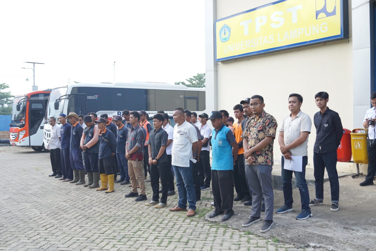 (Unila): 44 petugas kebersihan Universitas Lampung (Unila) mendapatkan kesempatan untuk belajar pengelolaan sampah berkelanjutan di beberapa tempat di Bandung. Mereka dilepas Wakil Rektor Bidang Umum dan Keuangan Unila Rudy, S.H., LL.M., LL.D., pada Rabu, 2 Agustus 2023.