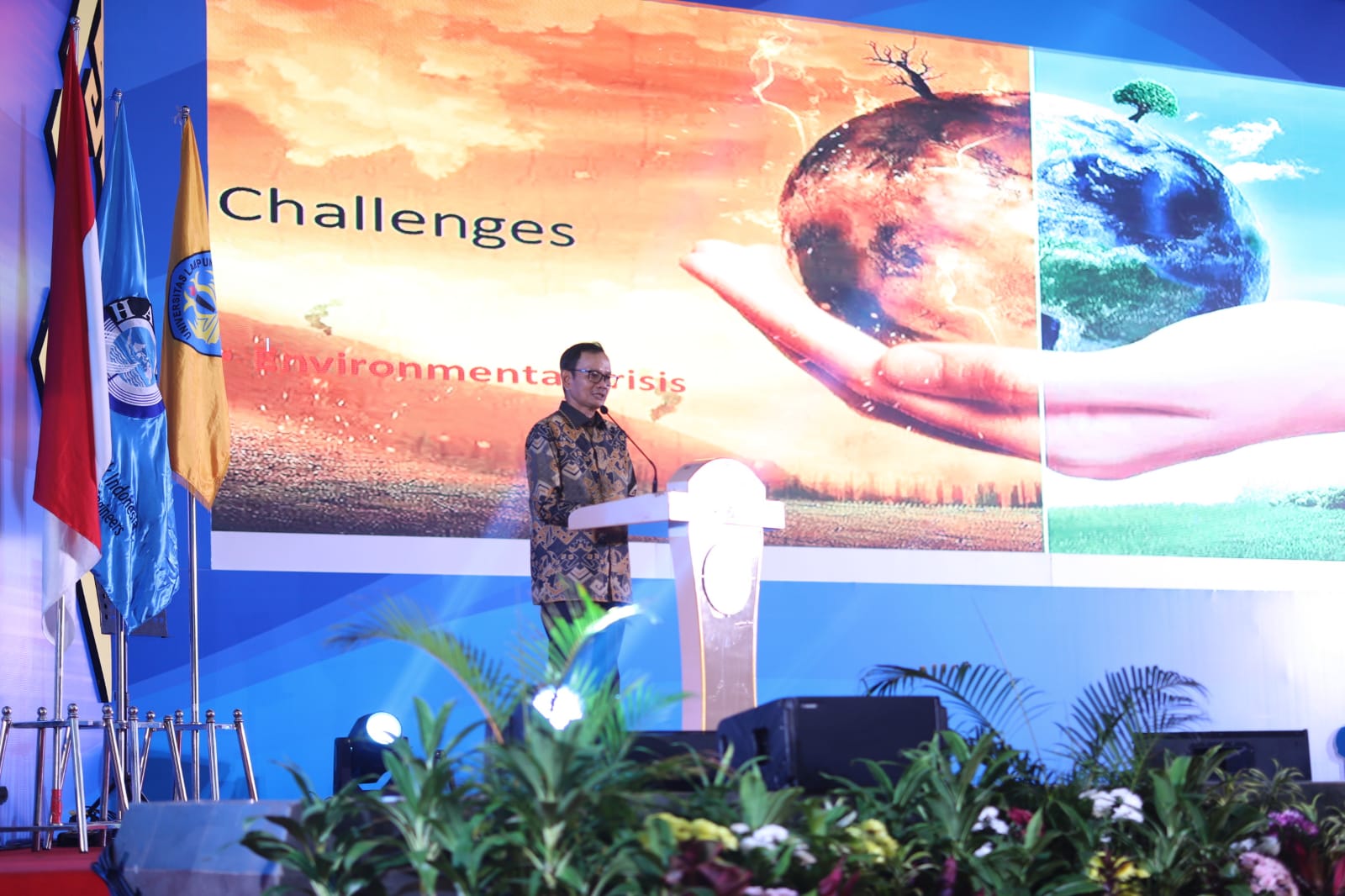 Dalam keynote speech, Rektor Universitas Lampung, Prof. Dr. Ir. Lusmeilia Afriani, D.E.A., IPM., ASEAN. Eng., mengingatkan tentang seriusnya dampak perubahan iklim di Indonesia.