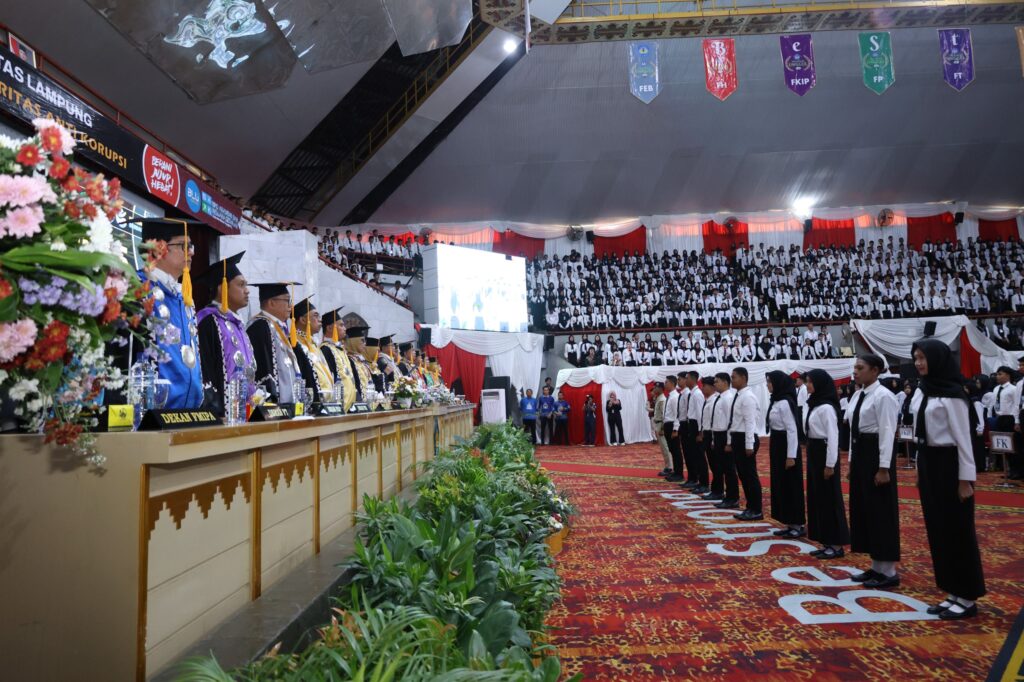 Kegiatan PKKMB Unila hari pertama dibuka resmi Ketua Senat Unila Prof. Dr. Herpratiwi, M.Pd., dilanjutkan dengan sambutan Rektor Unila Prof. Dr. Ir. Lusmeilia Afriani, D.E.A., IPM, ASEAN Eng., yang menegaskan dunia perkuliahan merupakan langkah besar dalam membentuk jati diri dan masa depan setiap mahasiswa.