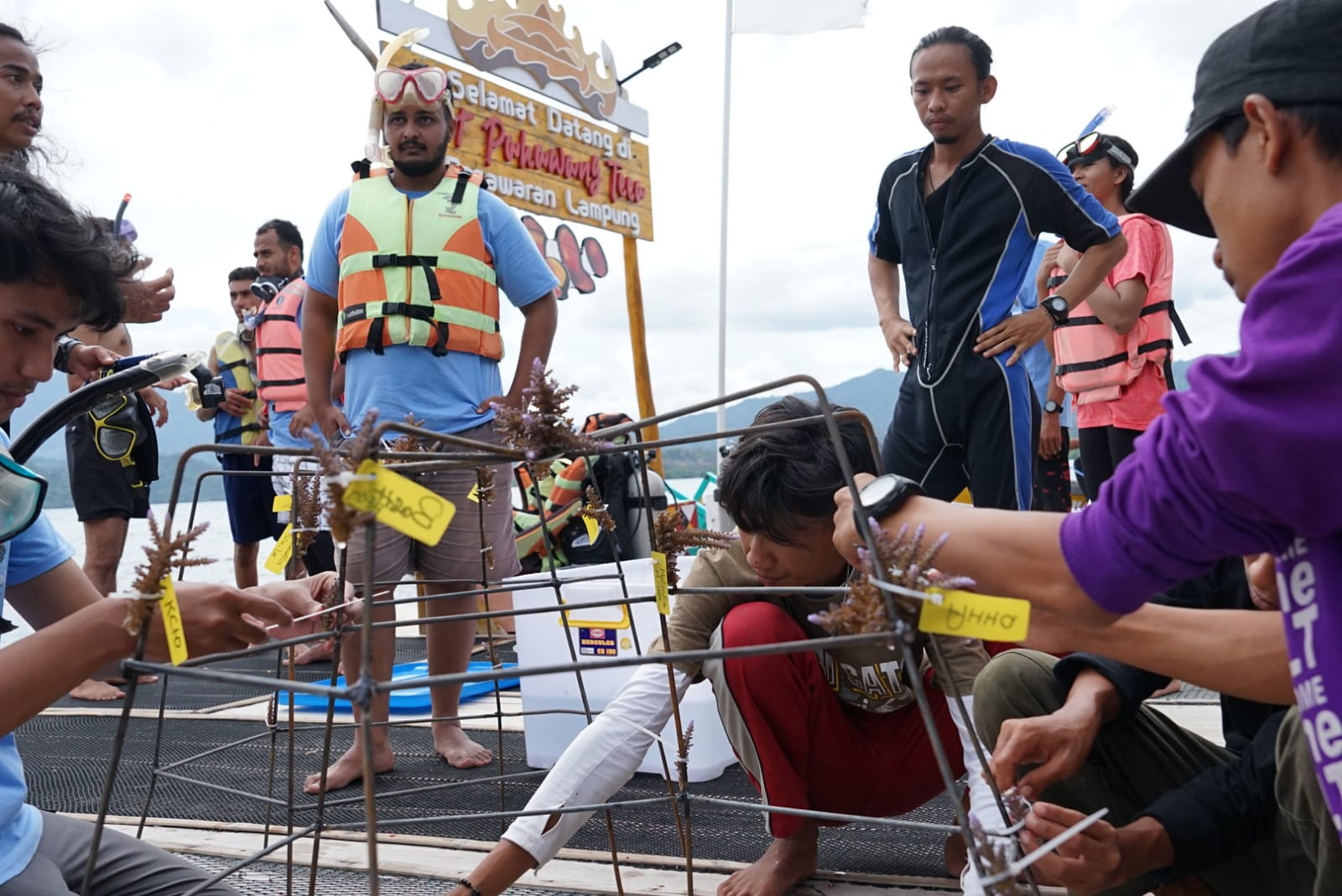 Selanjutnya mahasiswa diarahkan ke Dermaga Pahawang untuk melakukan transplantasi terumbu karang dan kegiatan snorkeling.