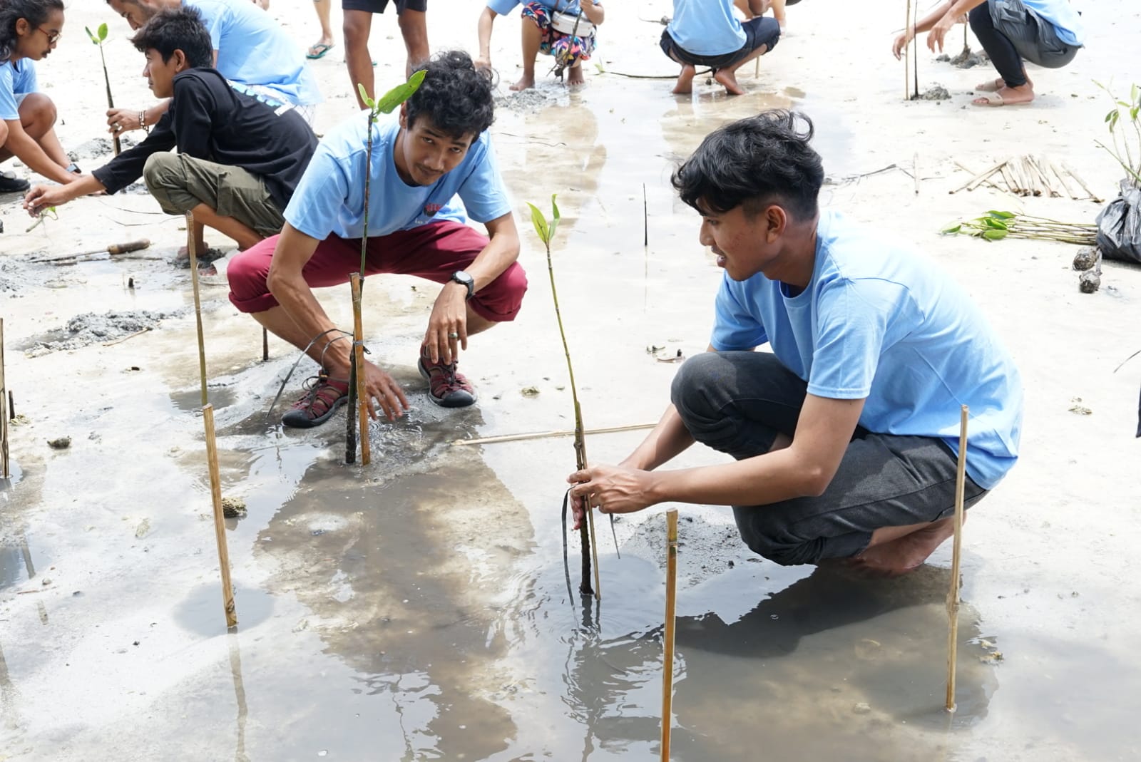 Penanaman mangrove dan transplantasi terumbu karang merupakan bentuk praktik dari kelas mengenai ekosistem pesisir.