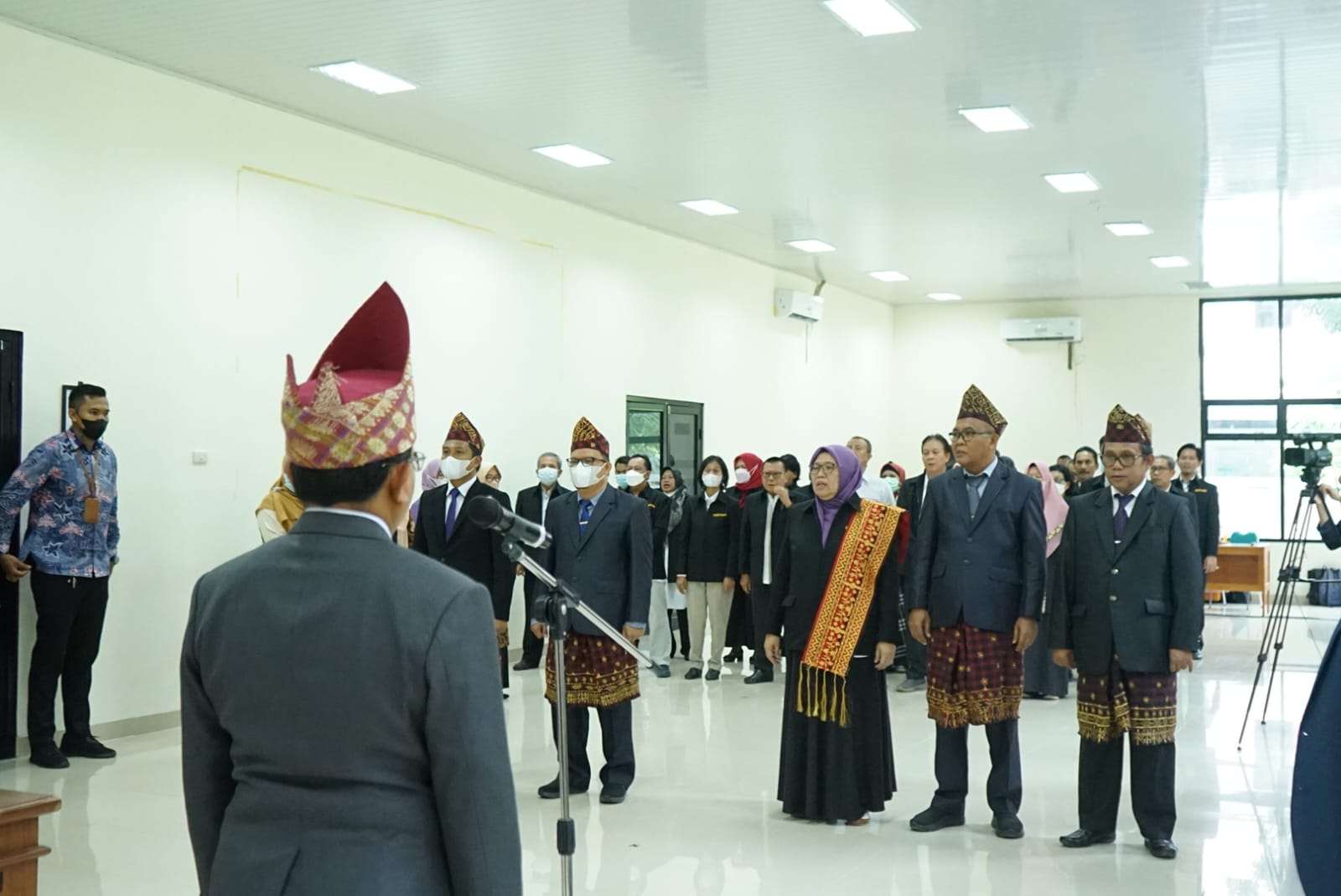 Kegiatan serah terima jabatan turut dihadiri para wakil rektor, para dekan, ketua senat, ketua LP2M, ketua LP3M, para kepala biro, para ketua lembaga, para ketua jurusan, dan ketua program studi di lingkungan FKIP Unila. [Humas/Daffa]