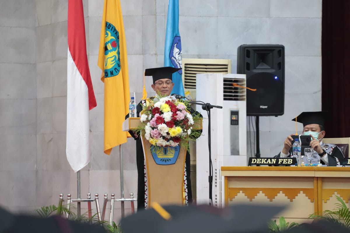 Ucapan terima kasih dan penghargaan yang tinggi juga ia sampaikan kepada seluruh dosen dan tenaga kependidikan atas kerja samanya melaksanakan tugas mendidik mahasiswa, sehingga mereka berhasil menyelesaikan studi dan diwisuda hari ini.