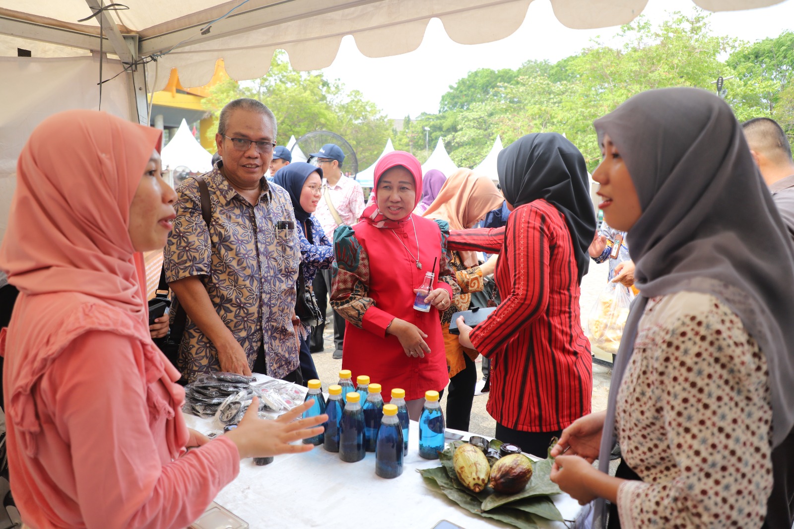 “Dengan adanya kegiatan seperti ini sangat mendukung kami untuk dapat memasarkan produk dan inovasi ke khalayak umum,” ujar Ara dari booth prodi Kimia.