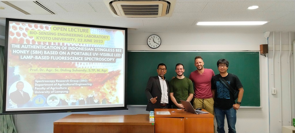 Prof. Diding Suhandy menyampaikan materi tersebut secara offline atau face-to-face (on site) di gedung utama Graduate School of Agriculture (GSA) Yoshida North Campus Kyoto University (building 8), selama tiga hari pada 20 – 22 Juni 2023.
