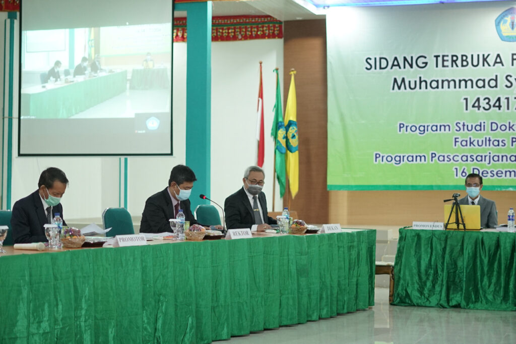 (Unila): Fakultas Pertanian (FP) Universitas Lampung (Unila) menggelar Ujian Terbuka Promosi Doktor Program Studi Doktor Ilmu Pertanian (PSDIP) FP Unila, di aula kampus setempat, Rabu (16/12/2020). Kegiatan dilaksanakan dengan dua metode yakni secara tatap muka dan daring.