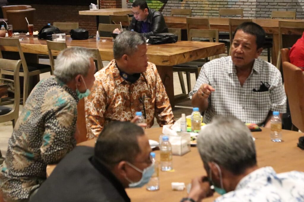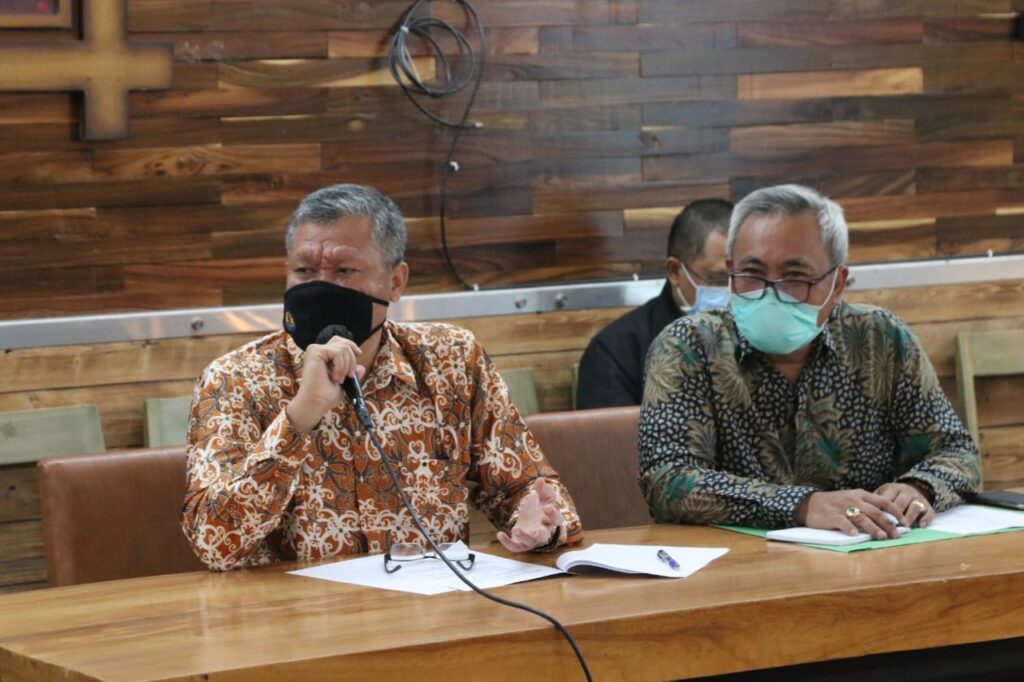 (Unila): Wakil Rektor Bidang Perencanaan, Kerja sama, dan TIK Universitas Lampung (Unila) Prof. Suharso mengikuti rapat pembahasan Perjanjian Kerja Sama (PKS) antara Pemerintah Provinsi Lampung, Perum Perindo, dan Universitas Lampung, di Wood Stairs Café Bandarlampung, Selasa (6/10/2020).