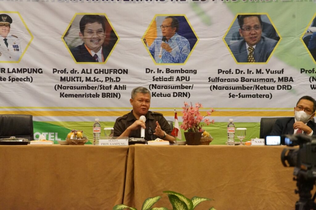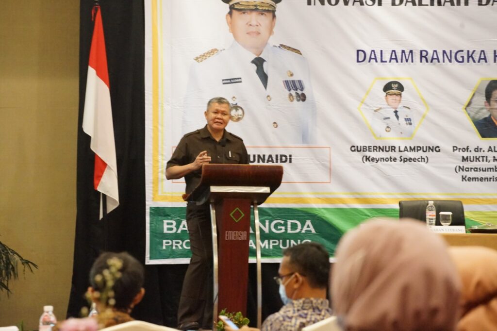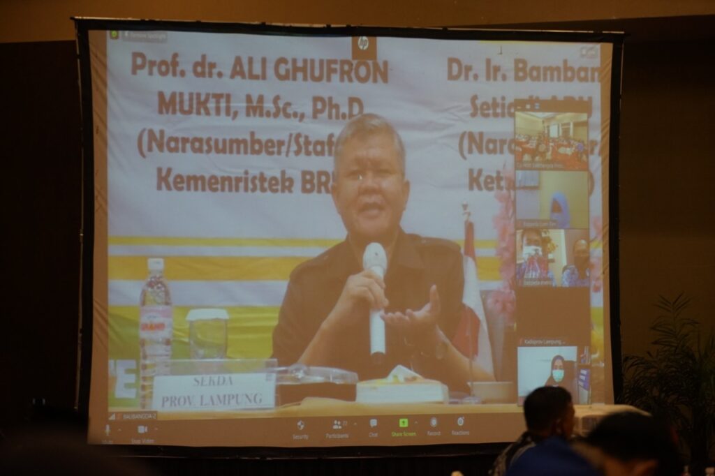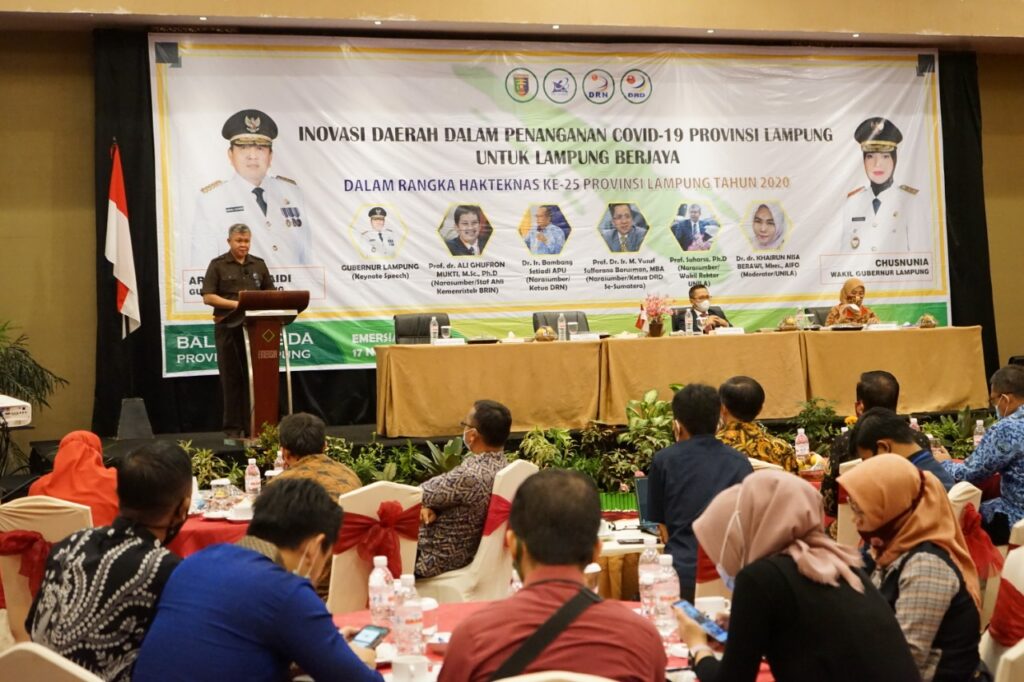 (Unila): Wakil Rektor Bidang Perencanaan, Kerja sama, dan TIK Unila Prof. Suharso, Ph.D., menjadi narasumber pada Webinar Inovasi Daerah dalam Penanganan Covid-19 Provinsi Lampung untuk Lampung Berjaya bertajuk “Dalam Rangka Hakteknas ke 25 Provinsi Lampung Tahun 2020. Kegiatan yang diselenggarakan Balitbang Provinsi Lampung ini berlangsung di Hotel Emersia Bandarlampung, Selasa (17/11/2020). []