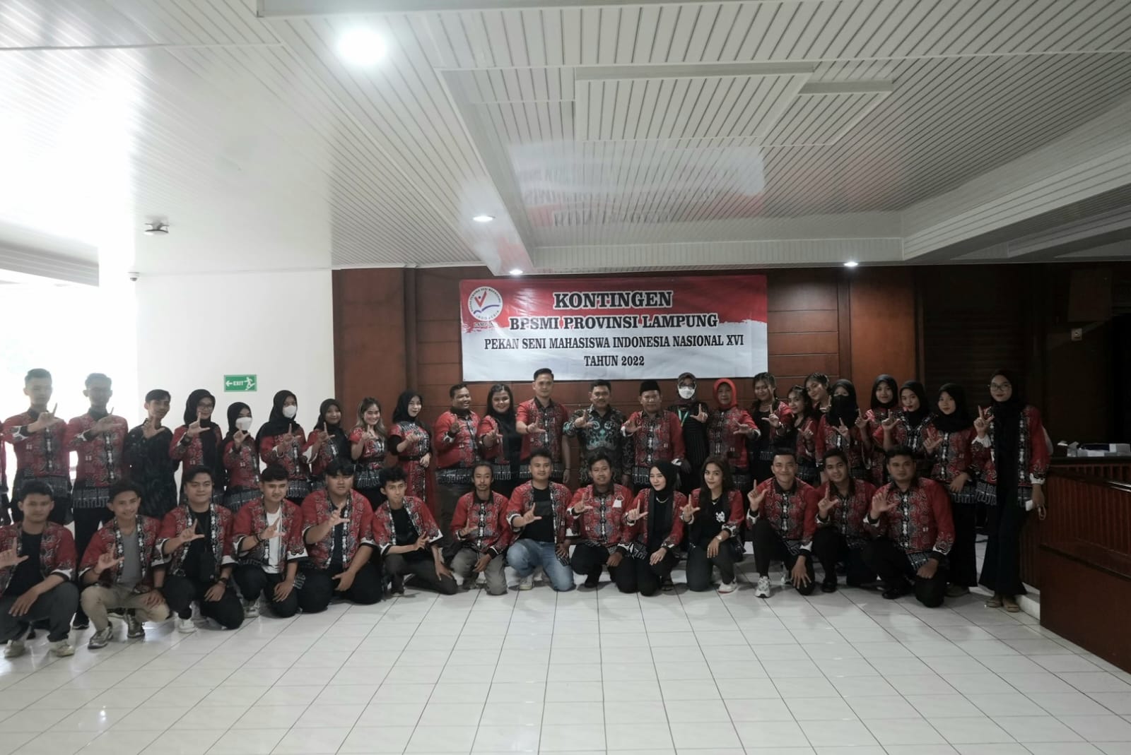 (Unila): Wakil Rektor Bidang Kemahasiswaan dan Alumni Universitas Lampung (Unila) Prof. Dr. Yulianto, M.S., secara resmi melepas 54 kontingen Badan Pembina Seni Mahasiswa Indonesia (BPMSI) Provinsi Lampung yang akan berkompetisi pada Pekan Seni Mahasiswa Nasional (Peksiminas) ke-16 di Universitas Brawijaya Malang.