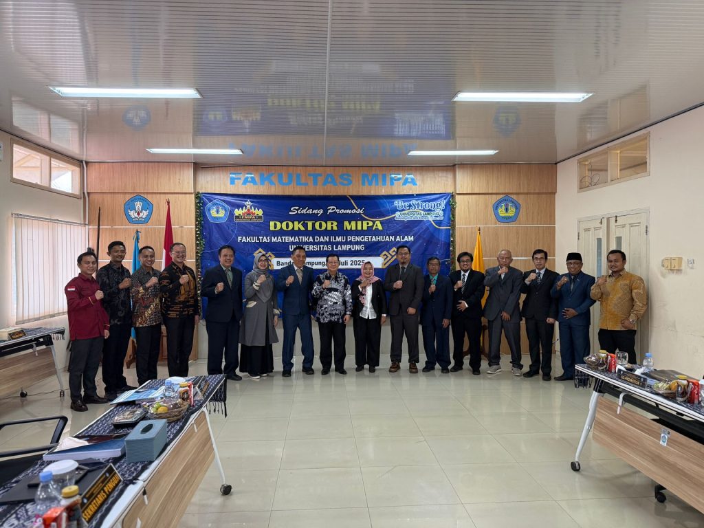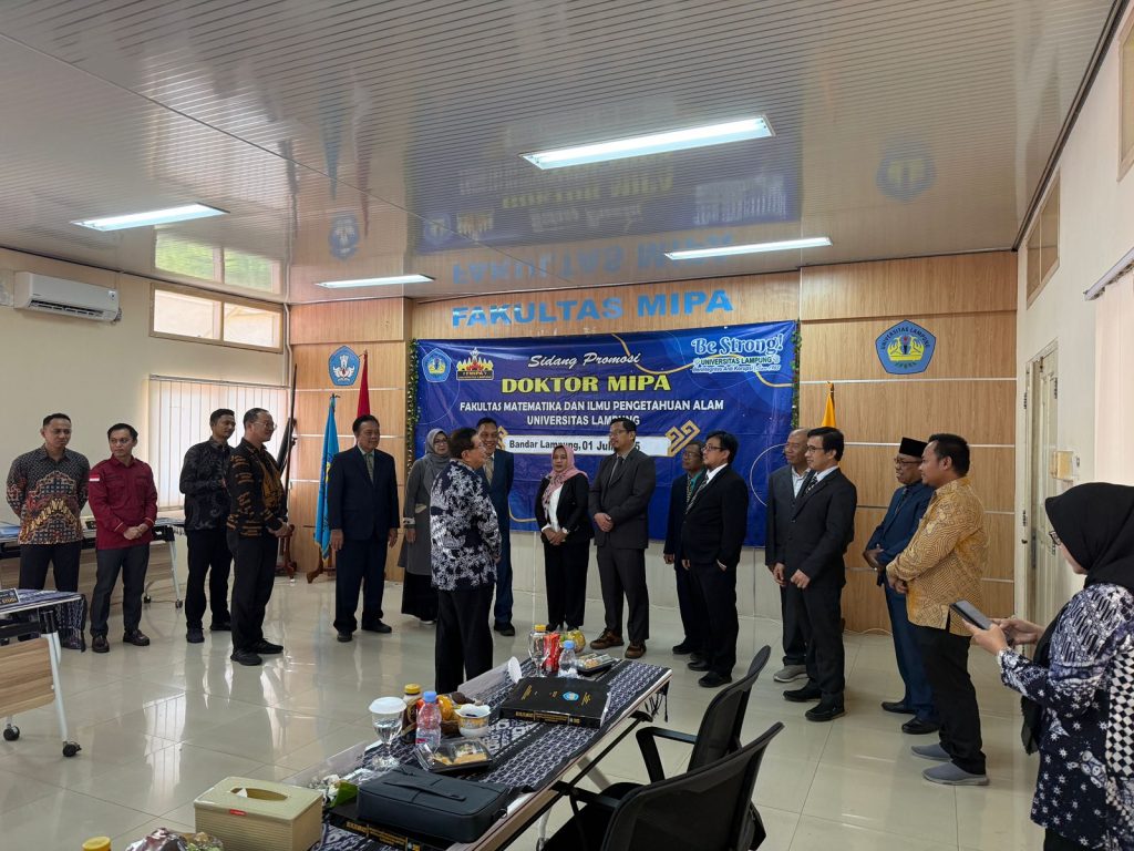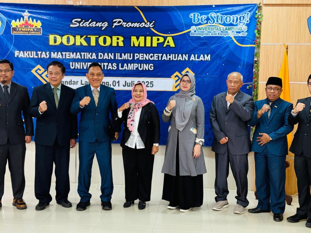 (Unila): Program Studi Doktor MIPA, hari ini kembali hasilkan doktor baru. Hari ini, Selasa 1 Juli 2025, Pukul 11:15, Rusliyawati diputuskan lulus dan meraih gelar Doktor MIPA pada bidang Ilmu Komputer setelah melaksanakan sidang promosi terbuka di ruang sidang lantai tiga Gedung Dekanat FMIPA Universitas Lampung (Unila).