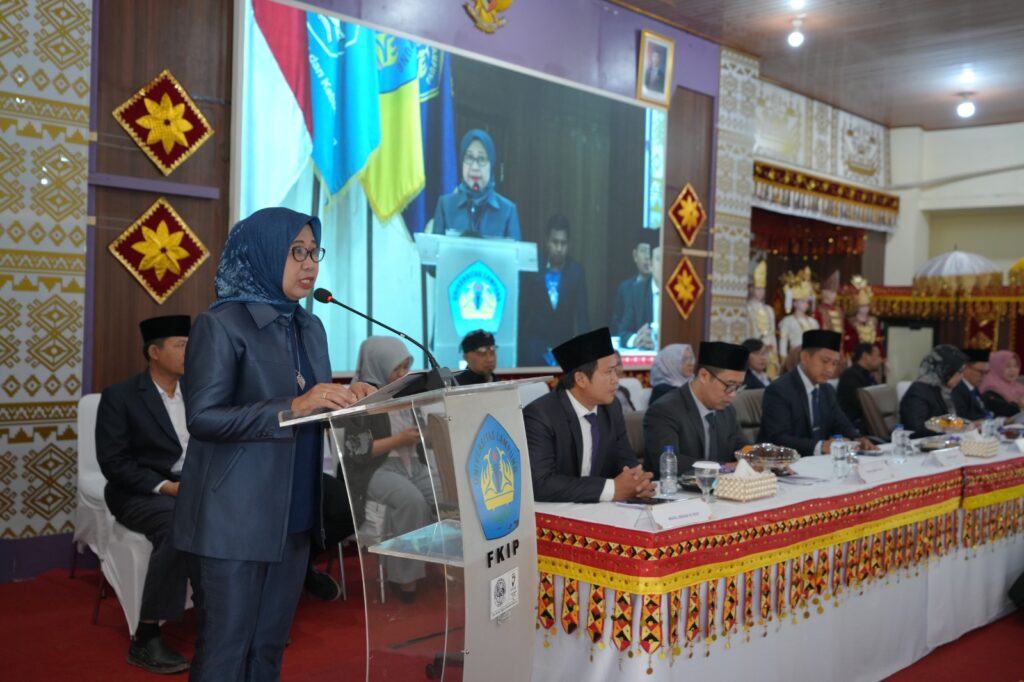 Prof. Lusmeilia Afriani dalam sambutannya menyampaikan, dies natalis ke-58 yang mengusung tema “Kolaborasi Berkelanjutan dalam Mewujudkan FKIP Unila Berdampak, Unggul, dan Berdaya Saing Global” menjadi momentum refleksi atas perjalanan panjang FKIP dalam membangun pendidikan.