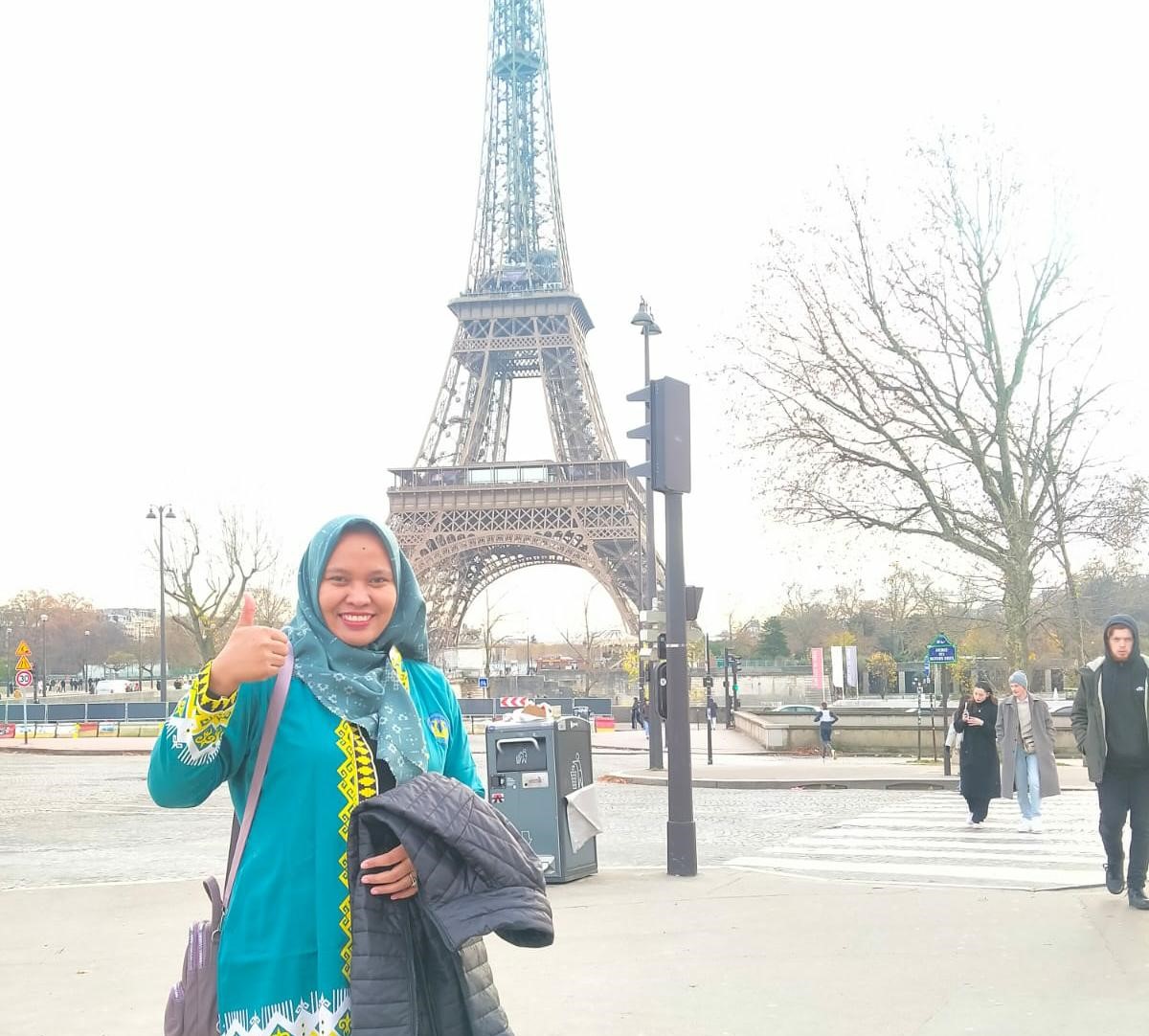 Tampak dari foto-foto yang dikirim melalui WhatsApp, Selasa, 26 Desember 2023, terlihat Madame Setia sangat bangga bisa berada di Prancis. Dia bahkan dengan bangga berfoto menggunakan baju batik Unila di depan Menara Eiffel untuk menunjukkan bahwa dosen Unila mampu meraih prestasi jauh hingga ke Eropa.