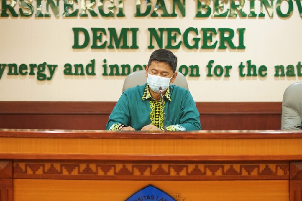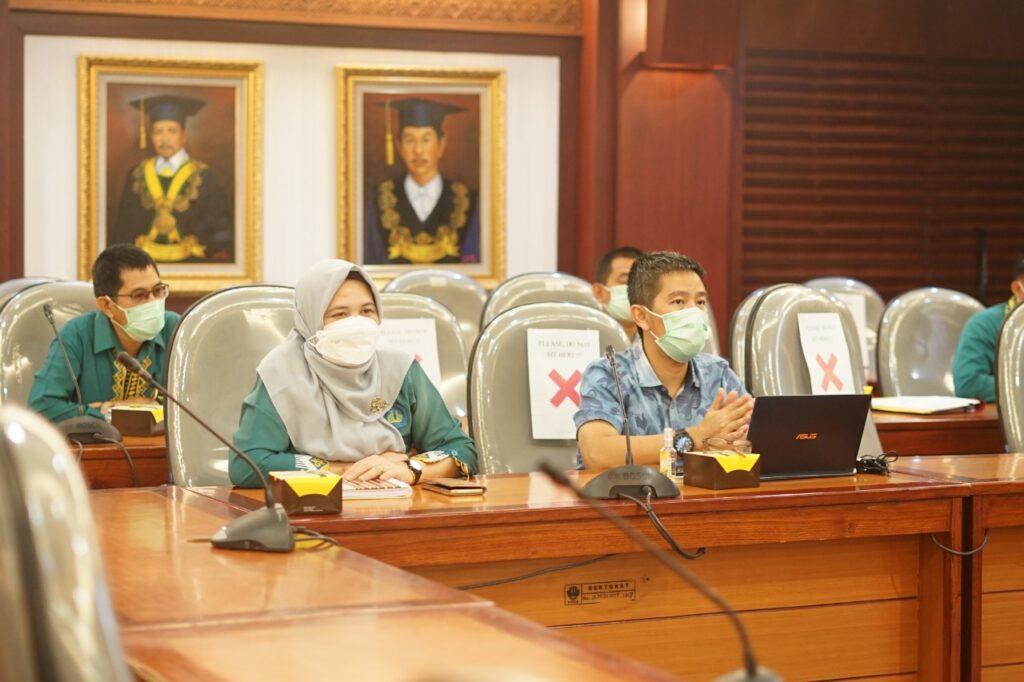 (Unila): Wakil Rektor Bidang Umum dan Keuangan (BUK) Universitas Lampung (Unila) Prof. Dr. dr. Asep Sukahor, M.Kes., Sp. KKLP., memimpin Rapat Koordinasi Evaluasi UKT Tahun 2020, Piutang UKT, Evaluasi Kinerja Dosen dan Tendik ASN, di Ruang Sidang Senat Rektorat lantai 2, Kamis, 28 Januari 2021.