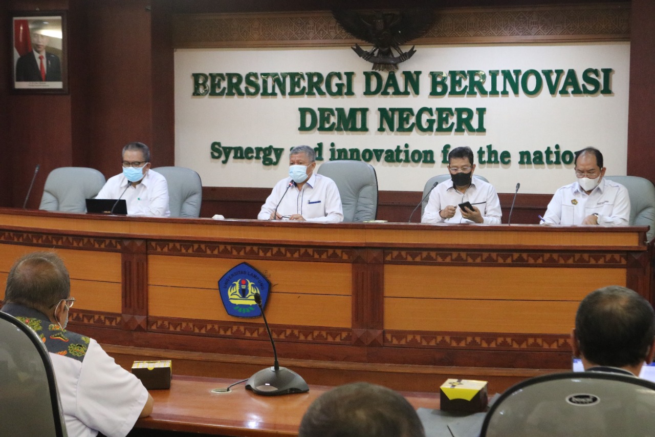 (Unila): Dalam rangka mewujudkan transformasi Universitas Lampung (Unila) yang berstatus Perguruan Tinggi Negeri Badan Layanan Umum (PTN-BLU) menuju Perguruan Tinggi Negeri Berbadan Hukum (PTN-BH), Unila menggelar rapat koordinasi persiapan PTN-BH di ruang sidang utama Rektorat, Rabu, 13 Oktober 2021. []
