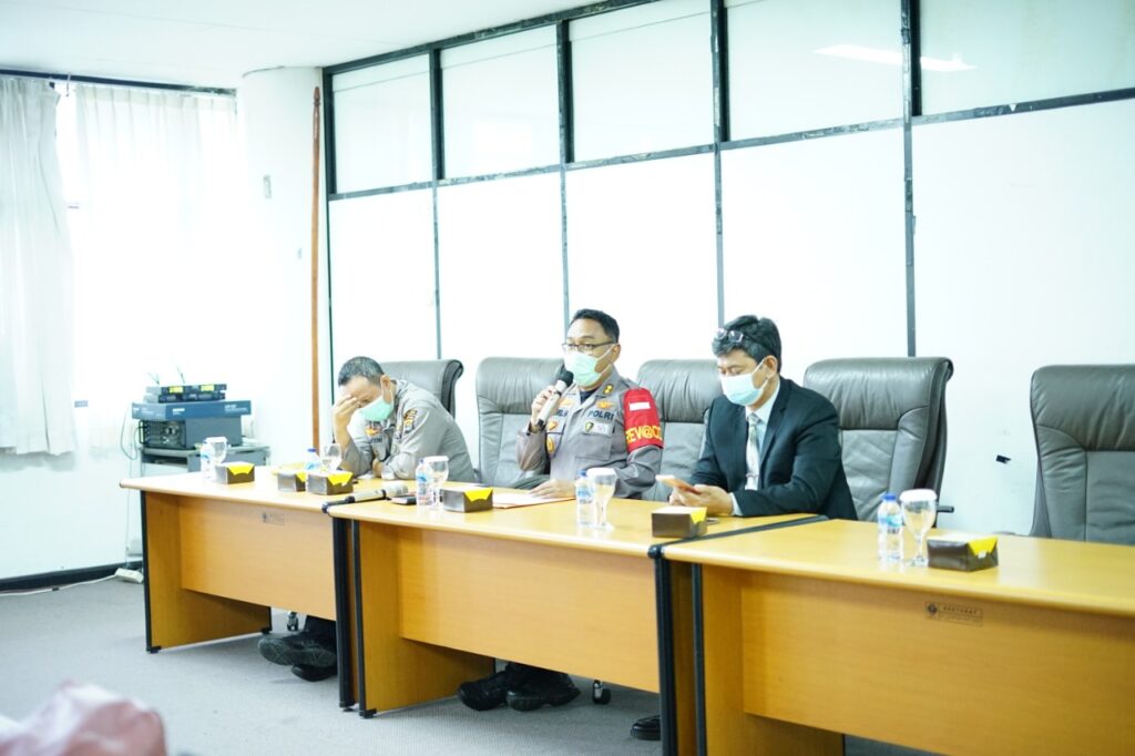 (Unila): Wakil Rektor Bidang Umum dan Keuangan Universitas Lampung (Unila) Prof. Dr. dr. Asep Sukohar, S.Ked., M.Kes., membuka rapat koordinasi persiapan vaksinasi bersama Polda Lampung, di ruang sidang lantai 4 Rektorat, Selasa, 7 September 2021.