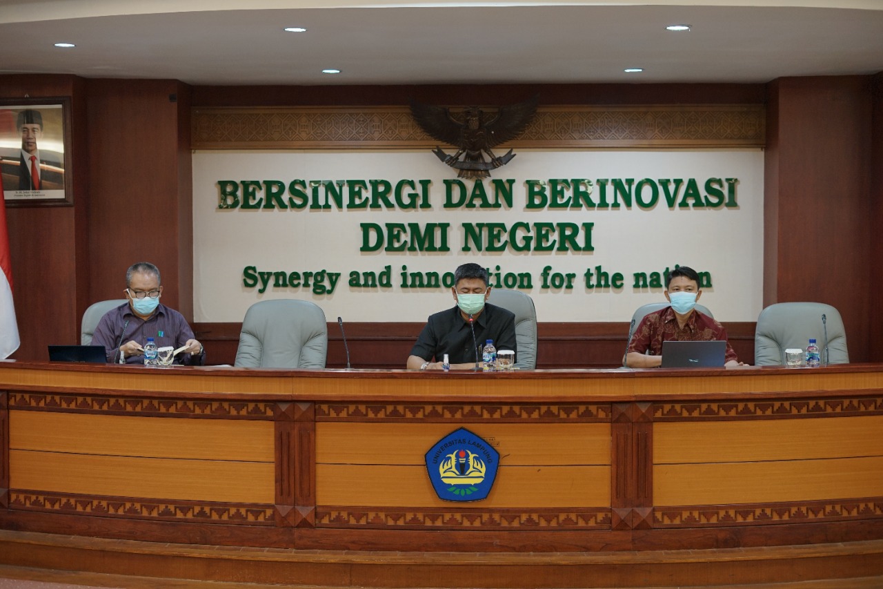 (Unila): Wakil Rektor Bidang Umum dan Keuangan Universitas Lampung (Unila) Prof. Dr. dr. Asep Sukohar, S.Ked., M.Kes., memimpin Rapat Pembahasan SOTK dan Statuta di Ruang Sidang Utama lantai 2 Gedung Rektorat, Selasa, 14 September 2021.