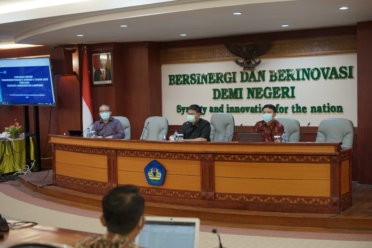 Prof. Asep, saat memimpin rapat mengatakan, Tim SOTK dan Tim Statuta Unila agar membuat perencanaan yang matang sehingga dapat dirampungkan pada tahun 2021 untuk selanjutnya diajukan ke kementerian. [Humas/Andri]