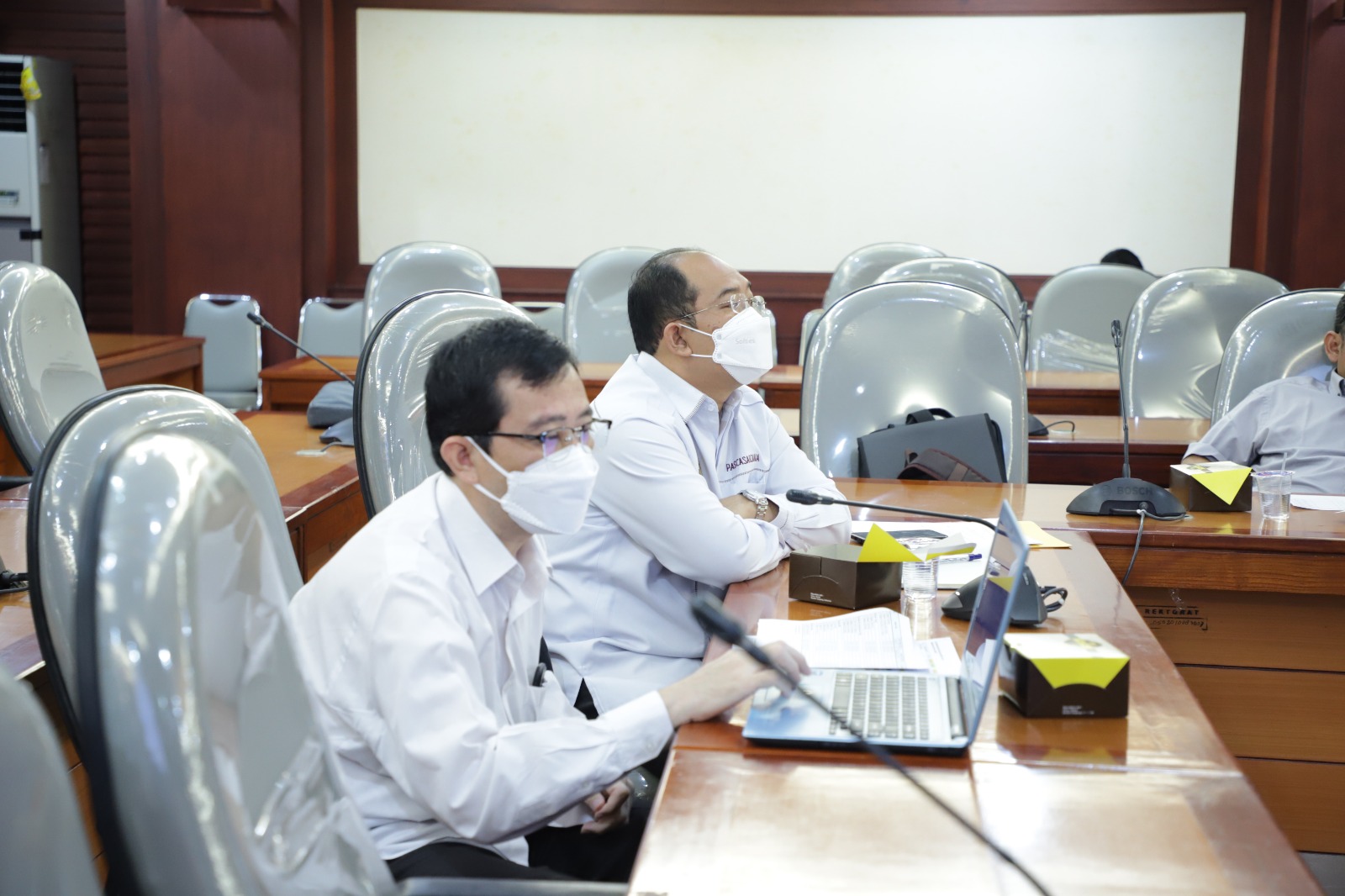 Rapat dipimpin langsung Wakil Rektor Bidang Umum dan Keuangan  Unila Rudy, S.H., LL.M., LL.D. didampingi Wakil Rektor Bidang Akademik Dr. Eng. Suripto Dwi Yuwono, S.Si., M.T. dan Kepala Biro Umum dan Keuangan Ida Ropaida, S.E., M.M.
