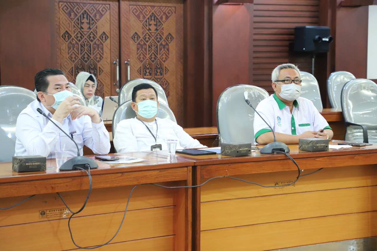 Selain rektor Unila, kegiatan dihadiri para wakil rektor, jajaran dekan, koordinator bagian perencanaan, dan jajaran staf bagian monitoring dan evaluasi Unila. [Humas/Riky]