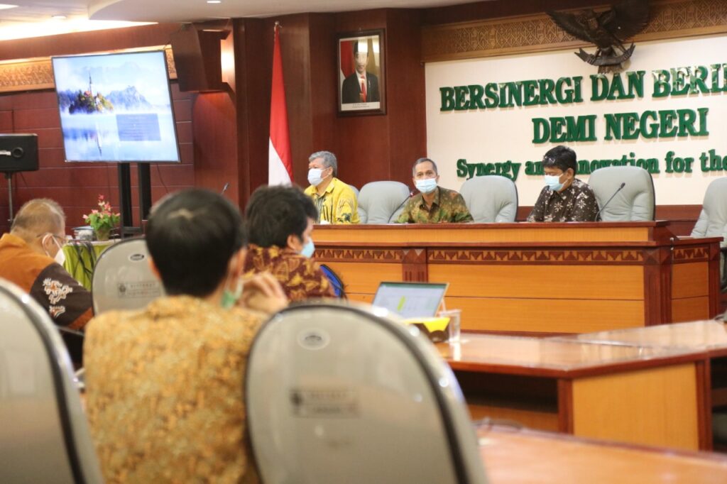 (Unila): Rektor Universitas Lampung (Unila) menggelar rapat Peningkatan Penerimaan Negara Bukan Pajak (PNBP) Unila Tahun 2022, di ruang sidang utama lantai dua Rektorat, Jumat, 26 Maret 2021.