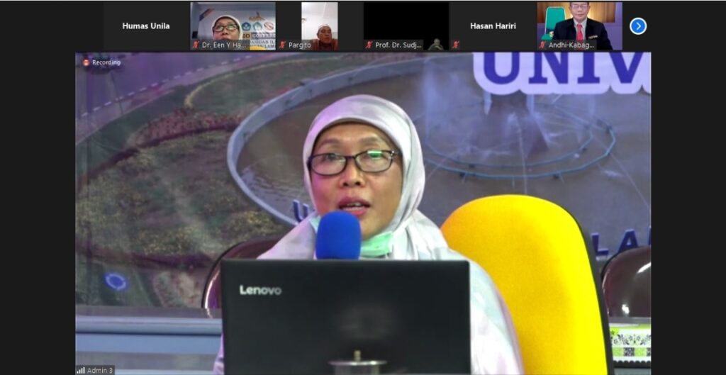(Unila): Rektor Universitas Lampung (Unila) Prof. Karomani memberi sambutan pada kegiatan Pengenalan Sistem Akademik Program Doktor Pendidikan Fakultas Keguruan dan Ilmu Pendidikan (FKIP) Unila yang diselenggarakan secara daring, Rabu (14/10/2020).