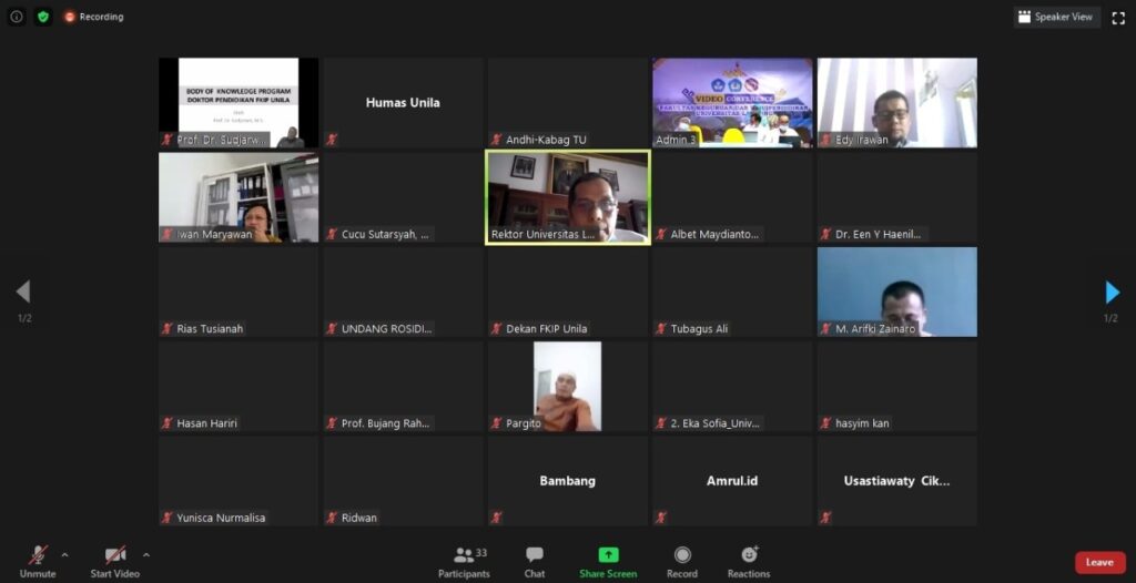 (Unila): Rektor Universitas Lampung (Unila) Prof. Karomani memberi sambutan pada kegiatan Pengenalan Sistem Akademik Program Doktor Pendidikan Fakultas Keguruan dan Ilmu Pendidikan (FKIP) Unila yang diselenggarakan secara daring, Rabu (14/10/2020).