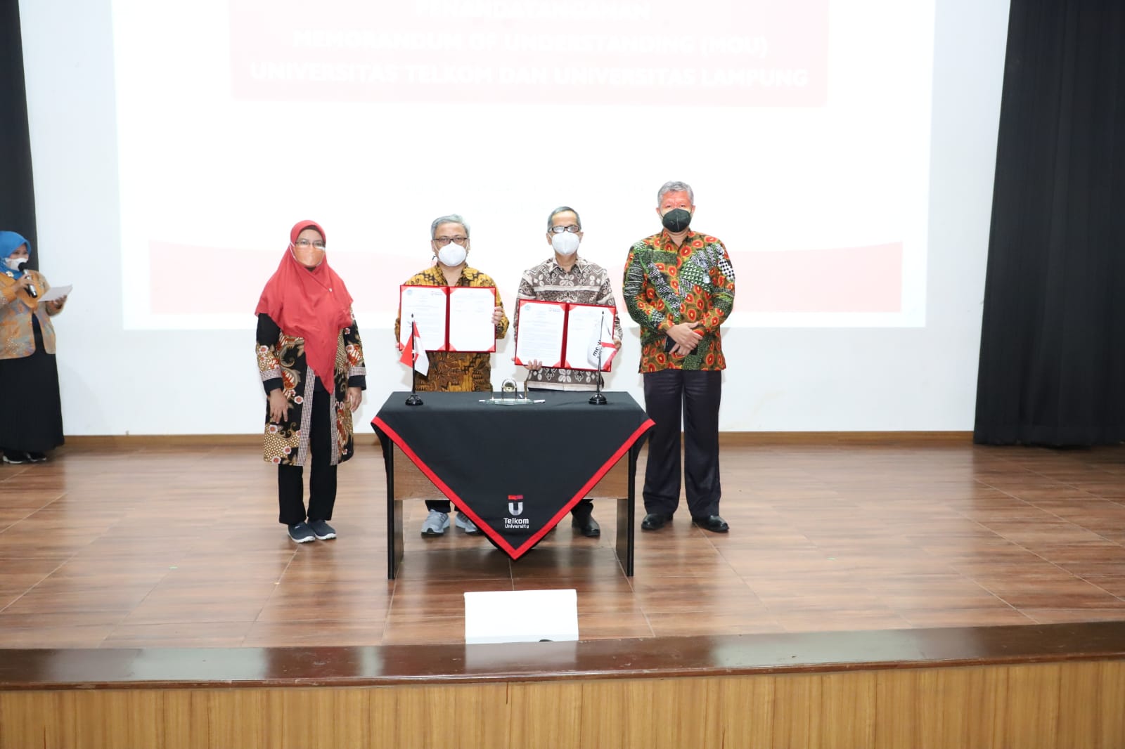 (Unila): Universitas Lampung (Unila) melakukan penandatanganan MoU kerja sama dengan Universitas Telkom, Bandung, Jawa Barat, Kamis, 4 Oktober 2021. Penandatanganan dilakukan kedua pimpinan universitas di Gedung Damar, Universitas Telkom, Bandung.