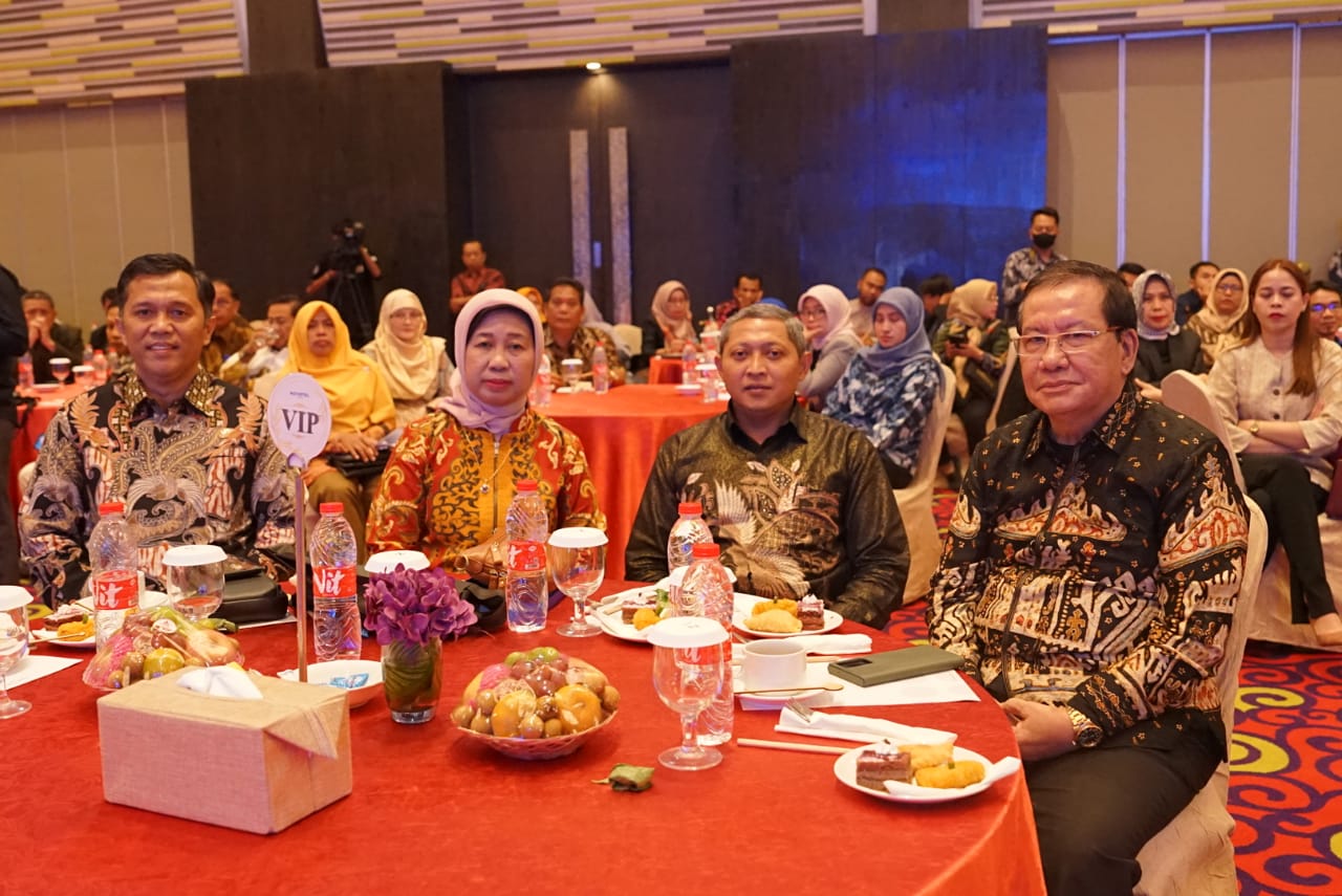 (Unila): Rektor Universitas Lampung (Unila) Prof. Dr. Ir. Lusmeilia Afriani, D.E.A., IPM., ASEAN Eng., dan Wakil Rektor Bidang Akademik Unila Dr. Eng. Suripto Dwi Yuwono, M.T., menghadiri pembukaan Rapat Kerja Pimpinan Perguruan Tinggi Swasta di Lingkungan Lembaga Layanan Pendidikan Tinggi (LLDIkti) Wilayah II. Acara prestisius ini berlangsung di Ballroom Hotel Novotel Lampung, Jumat malam, 15 September 2023.