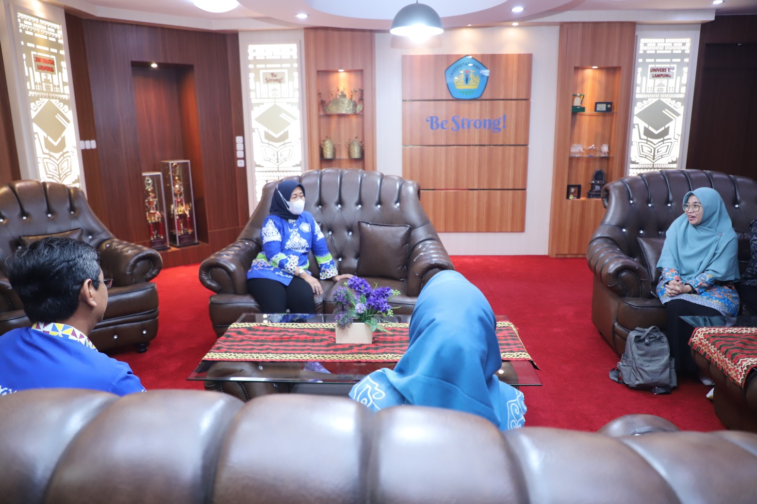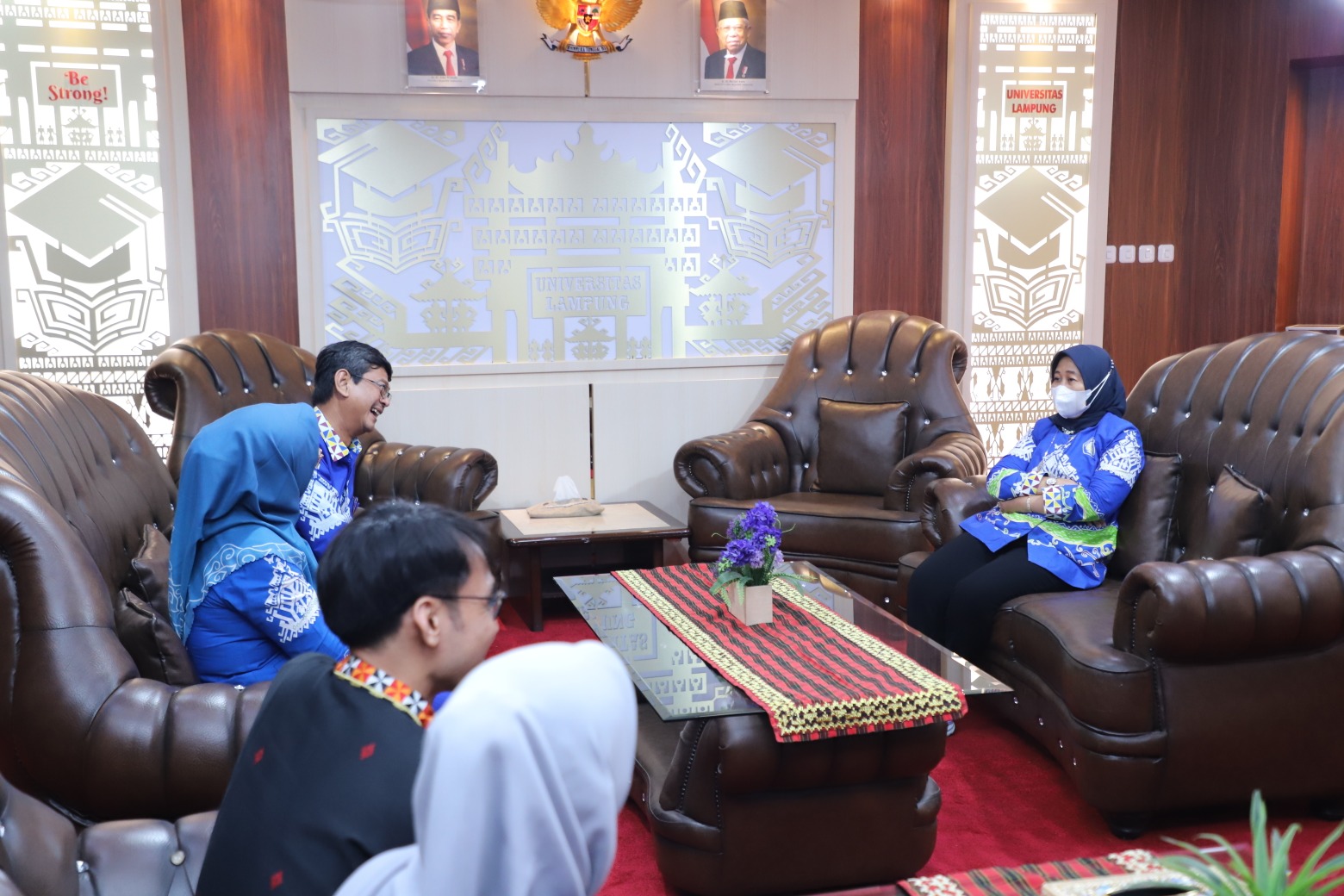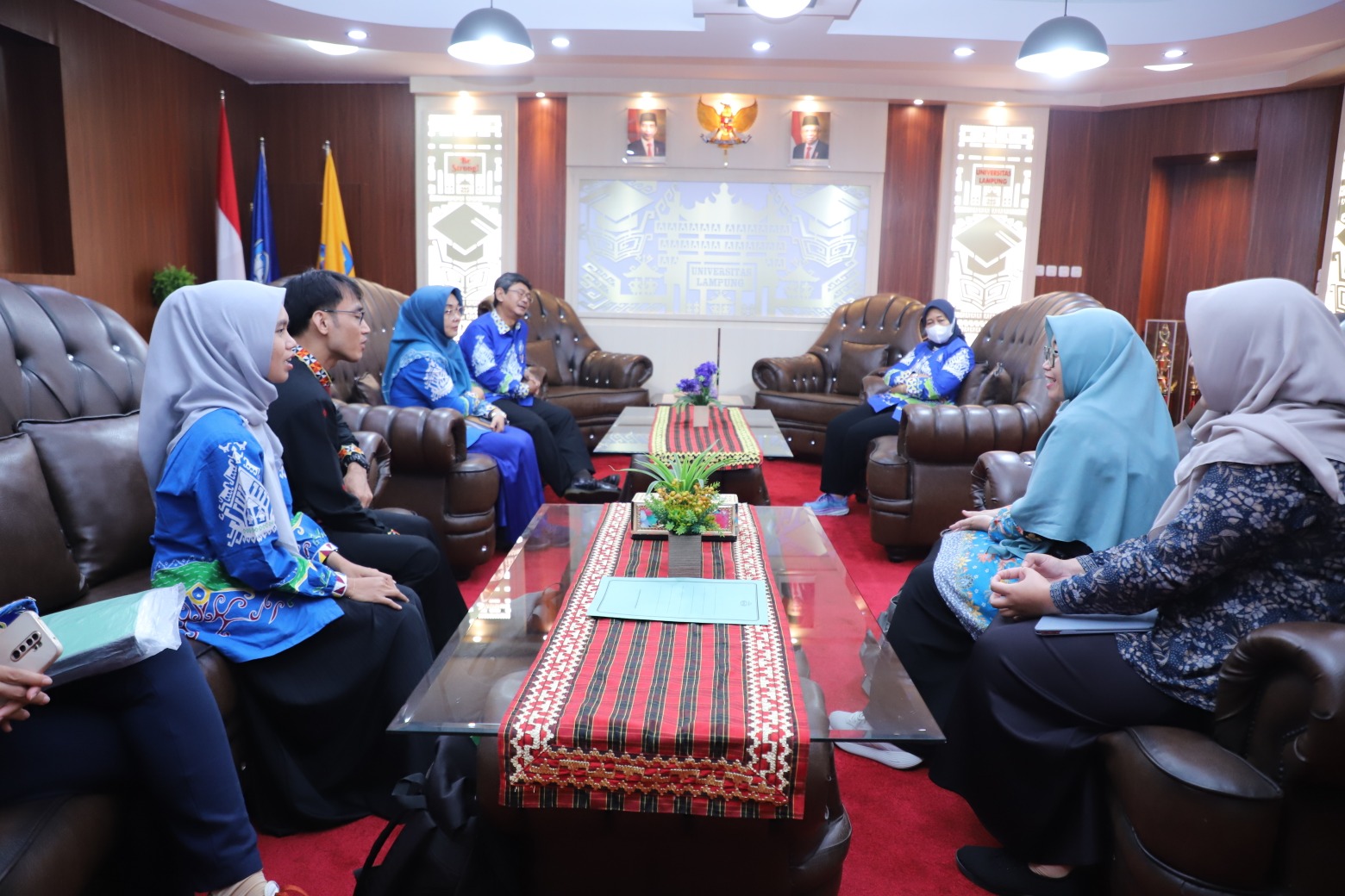 (Unila): Rektor Universitas Lampung (Unila) Prof. Dr. Ir. Lusmeilia Afriani, D.E.A., IPM., ASEAN Eng., menerima audiensi dari jajaran Program Studi Pendidikan Profesi Apoteker (PSPPA) di ruang kerjanya lantai dua Rektorat kampus setempat.