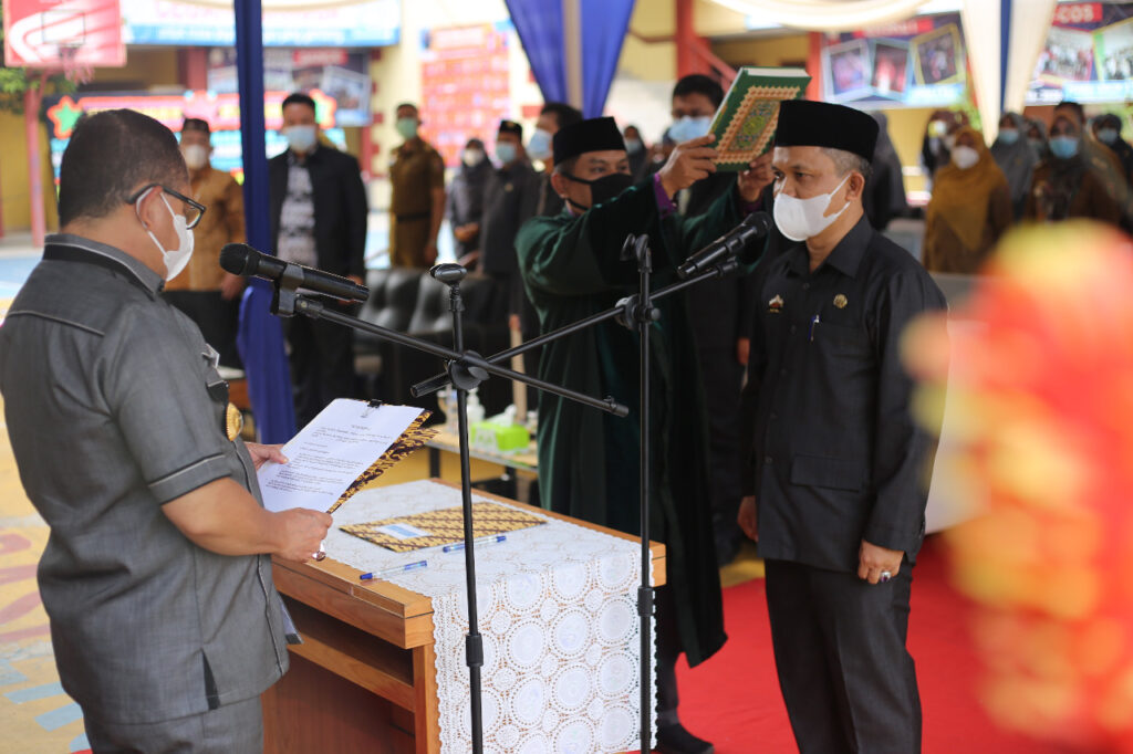 (Unila): Rektor Universitas Lampung (Unila) Prof. Dr. Karomani, M.Si., selaku Ketua Dewan Pembina SMA YP Unila menghadiri Pelantikan dan Serah Terima Jabatan Kepala SMA YP Unila Bandarlampung Periode Tahun 2021 – 2025, Senin, 5 April 2021.
