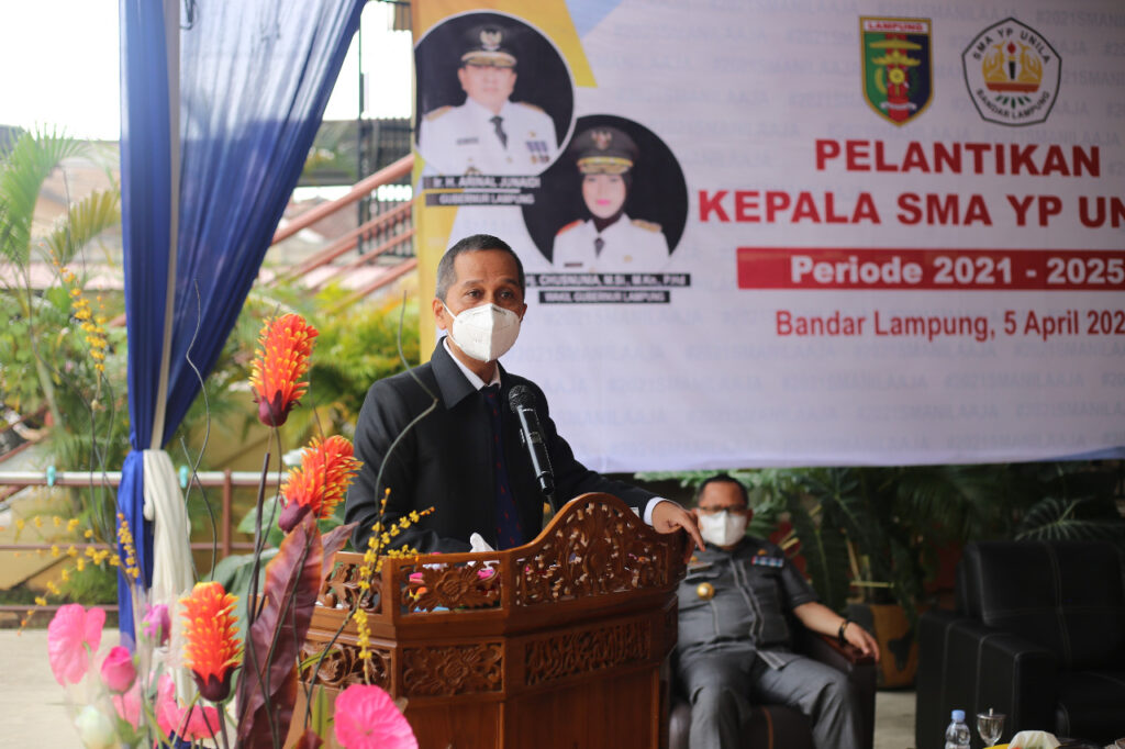 Prof. Karomani dalam sambutannya menyampaikan, pelantikan kepala SMA YP Unila merupakan hal istimewa. SMA YP Unila merupakan satu-satunya sekolah swasta di Lampung yang dikepalai Pegawai Negeri Sipil (PNS) dan dilantik oleh gubernur.