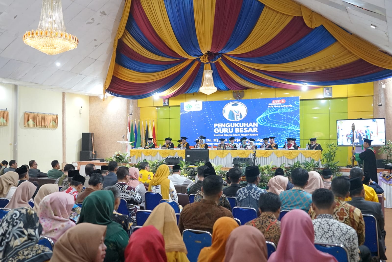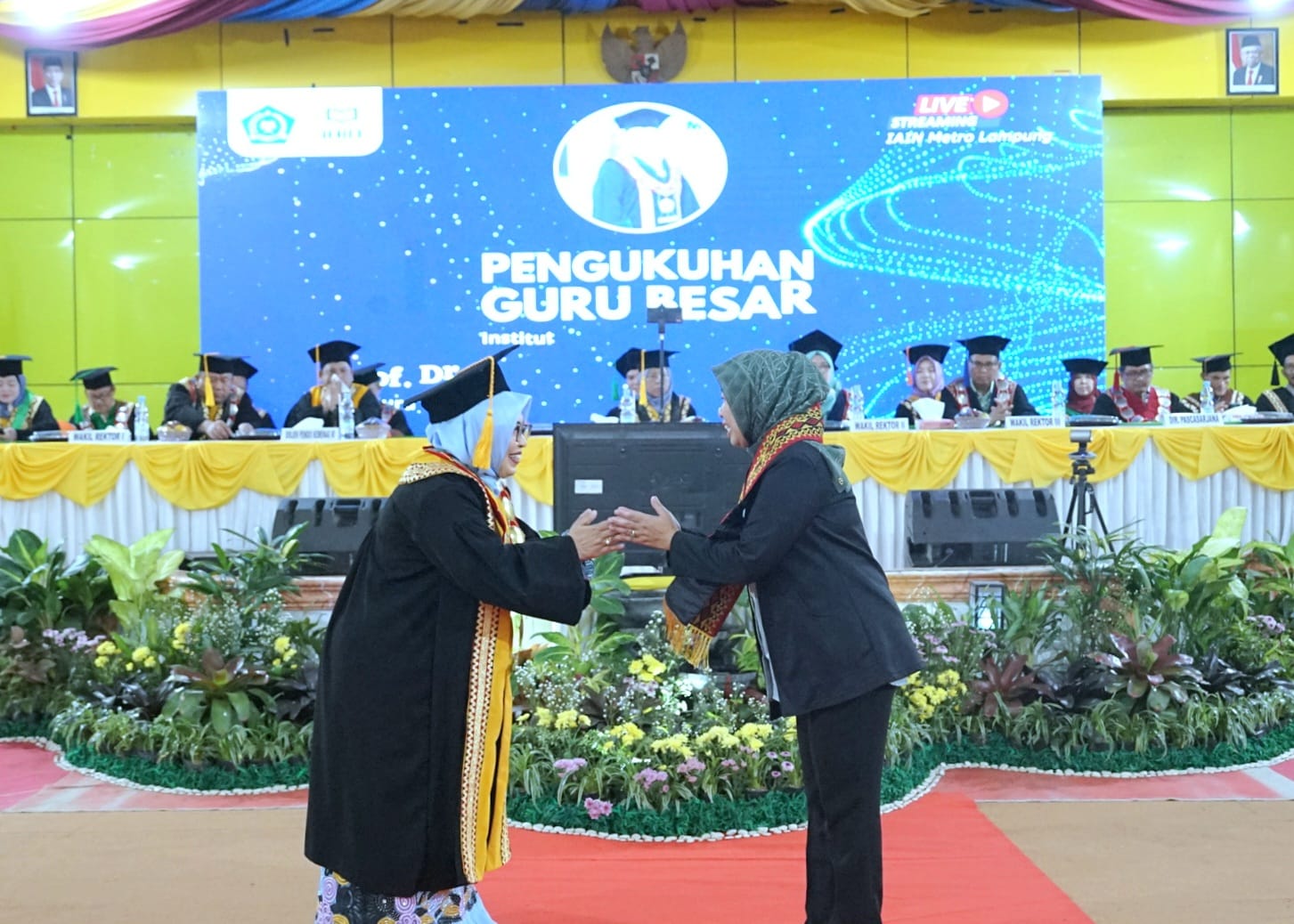(Unila): Rektor Universitas Lampung (Unila) Prof. Dr. Ir. Lusmeilia Afriani, D.E.A., I.P.M., menghadiri Pengukuhan Guru Besar Rektor Institut Agama Islam Negeri (IAIN) Prof. Dr. Siti Nurjanah, M.Ag., PIA., di aula gedung serbaguna kampus setempat, Kamis, 20 Juli 2023.