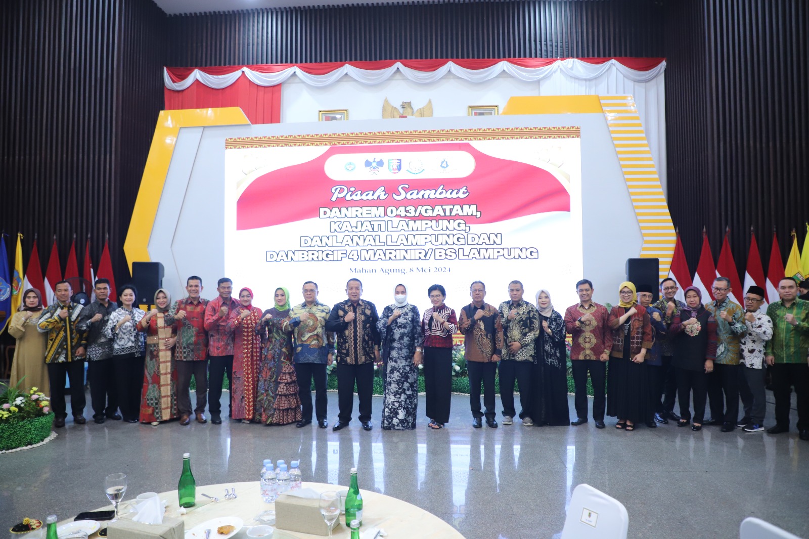 Jajaran Forkopimda yang melaksanakan pergantian jabatan antara lain Danrem 043/Garuda Hitam Brigjen TNI Iwan Ma’ruf Zainudin, Kepala Kejaksaan Tinggi Lampung, Komandan Brigif 4 Marinir Kolonel (Mar) Bob Osianto Siregar.