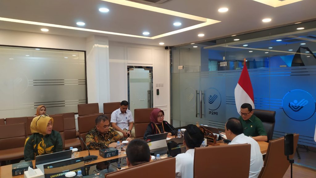 (Unila): Rektor Universitas Lampung (Unila) Prof. Dr. Ir. Lusmeilia Afriani, D.E.A., IPM., ASEAN., Eng., didampingi Wakil Rektor Bidang Perencanaan, Kerja Sama, dan Sistem Informasi, Kepala LPPM, dan Dekan FISIP Unila melakukan kunjungan ke Kementerian Pelindungan Pekerja Migran Indonesia (P2MI), Selasa, 21 Januari 2025.