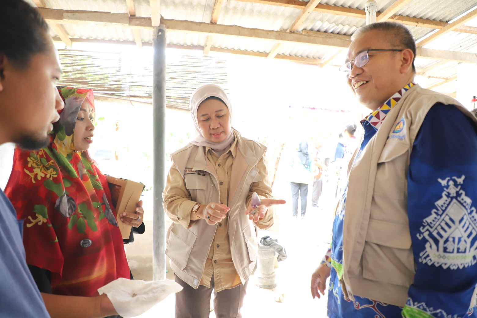 (Unila): Rektor Universitas Lampung (Unila) Prof. Dr. Ir. Lusmeilia Afriani, D.E.A., IPM., ASEAN Eng., berkesempatan mengunjungi wisata Gunung Batu dan pengrajin batu akik asli Kecamatan Tanjung Bintang, Kabupaten Lampung Selatan, Kamis, 1 Februari 2024.