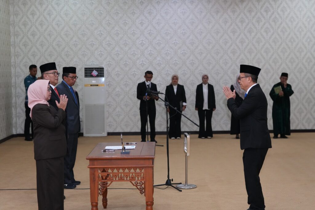 (Unila): Rektor Universitas Lampung (Unila) Prof. Dr. Ir. Lusmeilia Afriani, D.E.A., IPM., ASEAN Eng., melantik dan mengambil sumpah jabatan Dekan Fakultas Teknik Unila periode 2025/2029. Kegiatan berlangsung di ruang sidang lantai empat rektorat, Jumat, 5 Desember 2025.