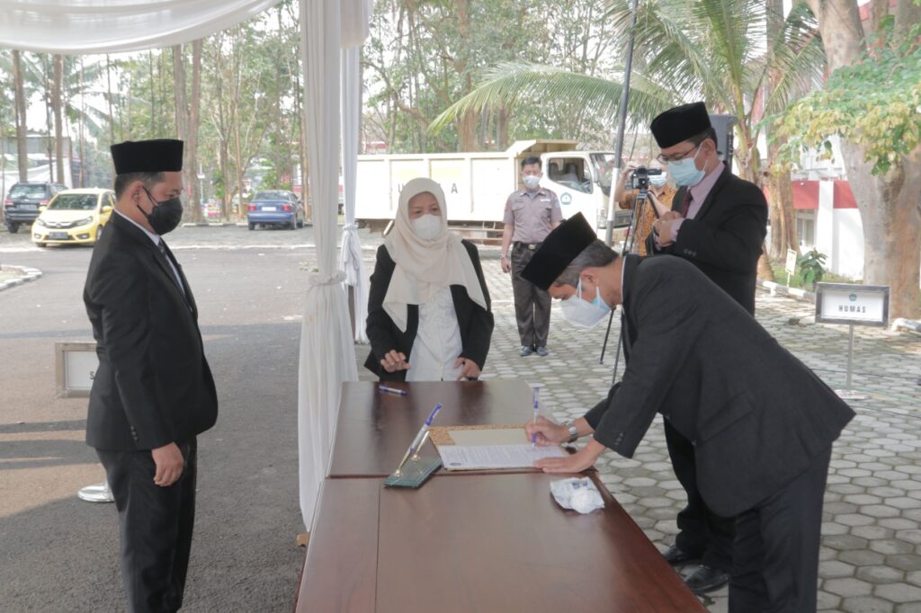 (Unila): Universitas Lampung (Unila) Prof. Dr. Karomani, M.Si., melantik dan mengambil sumpah jabatan Muslimin, S.E., M.Sc., sebagai Wakil Dekan Bidang Kemahasiswaan dan Alumni Fakultas Ekonomi dan Bisnis (FEB), Rabu, 18 Agustus 2021. []