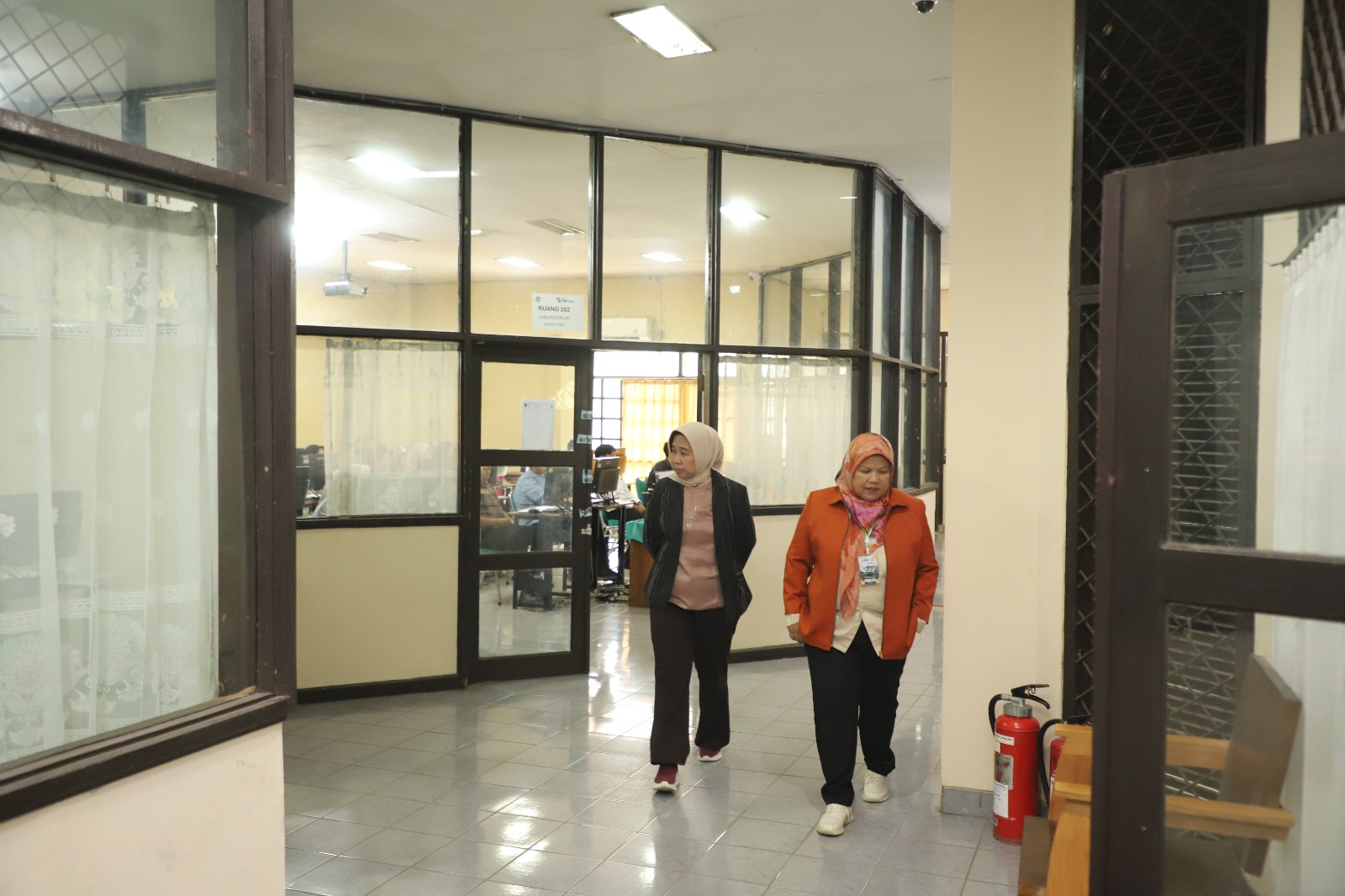 (Unila): Rektor Universitas Lampung (Unila) Prof. Dr. Ir. Lusmeilia Afriani, D.E.A., IPM., ASEAN Eng., melakukan monitoring terkait pelaksanaan ujian tulis mandiri, di Gedung UPT TIK Unila, pada Senin, 8 Juli 2024.