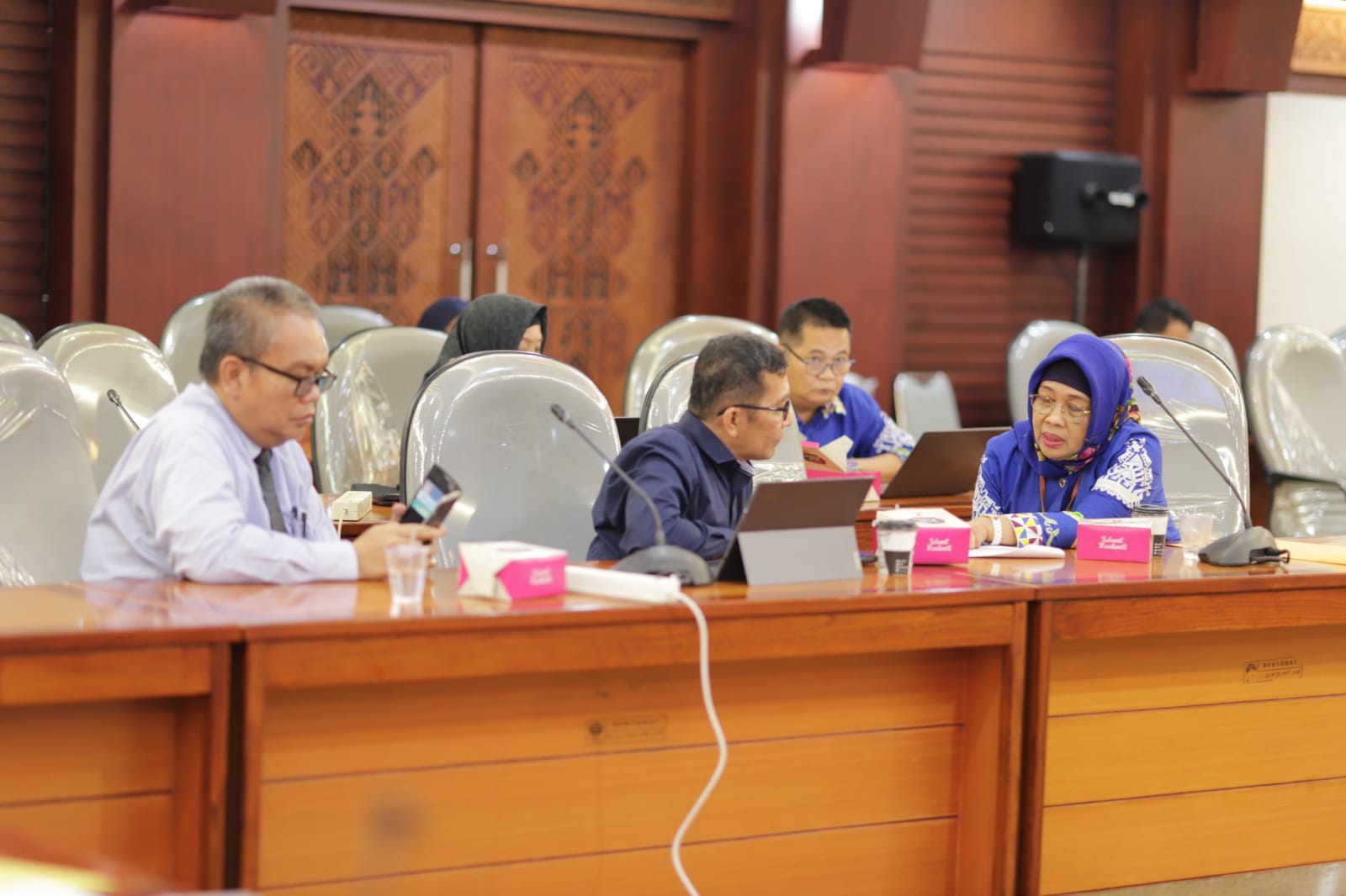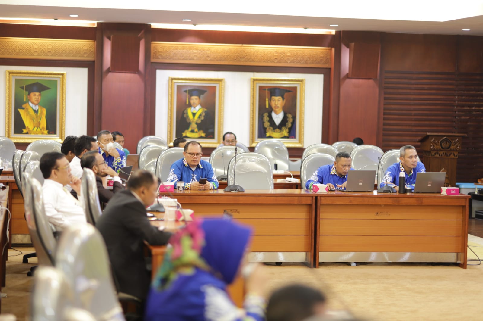 (Unila): Rektor Universitas Lampung (Unila) Prof. Dr. Ir. Lusmeilia Afriani, D.E.A., I.P.M., memimpin rapat Review Kegiatan dan Anggaran Tahun Anggaran 2023 di ruang sidang utama rektorat lantai dua, Senin, 22 Mei 2023. Kegiatan turut dihadiri jajaran wakil rektor, kepala biro, dekan, dan tim dari bagian perencanaan kampus setempat. []