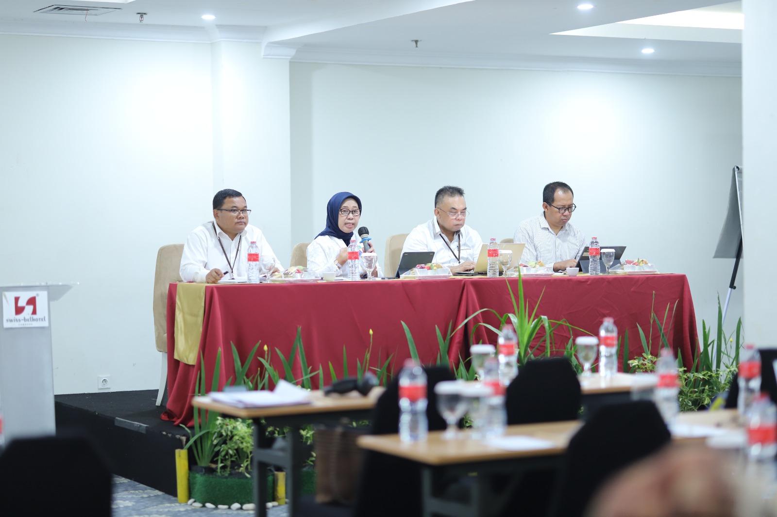 (Unila): Rektor Universitas Lampung (Unila) Prof. Dr. Ir. Lusmeilia Afriani, D.E.A., I.P.M., ASEAN Eng., memimpin rapat Sosialisasi Arah Kebijakan Rencana Kerja dan Anggaran (RKA) Unila dan Tata Kelola Pelaksanaan Anggaran Tahun Anggaran 2024 di ruang pertemuan Swissbell Hotel, Rabu, 11 Oktober 2023.