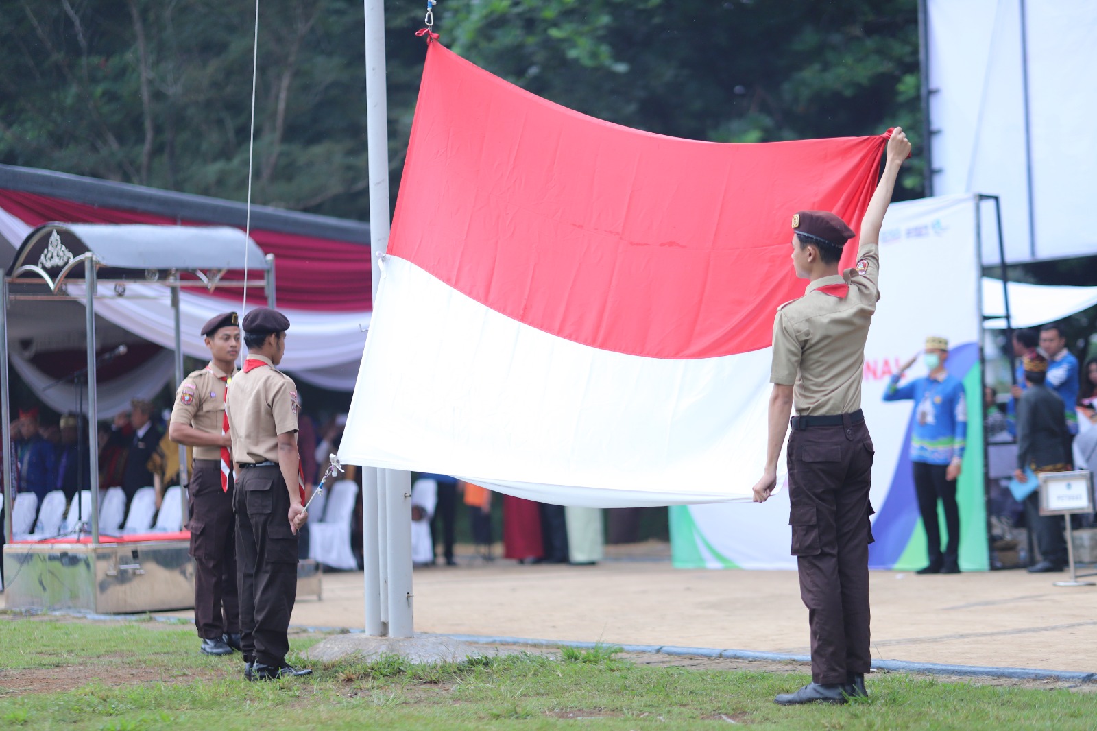 (Unila): Rektor Universitas Lampung (Unila) Prof. Dr. Ir. Lusmeilia Afriani, D.E.A., IPM., ASEAN Eng., memimpin upacara bendera peringatan Hari Pendidikan Nasional (Hardiknas) pada Kamis, 2 Mei 2024, di lapangan sepak bola kampus setempat.