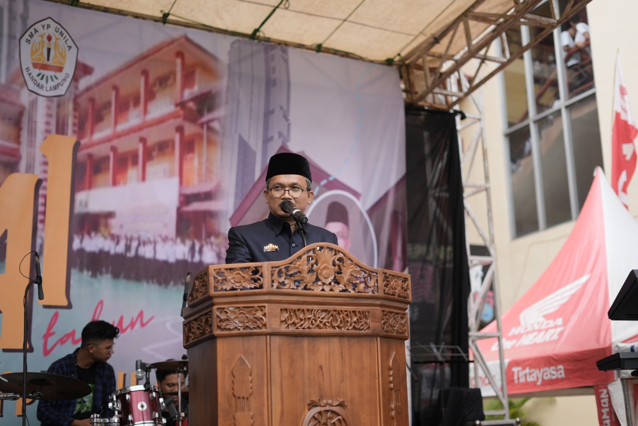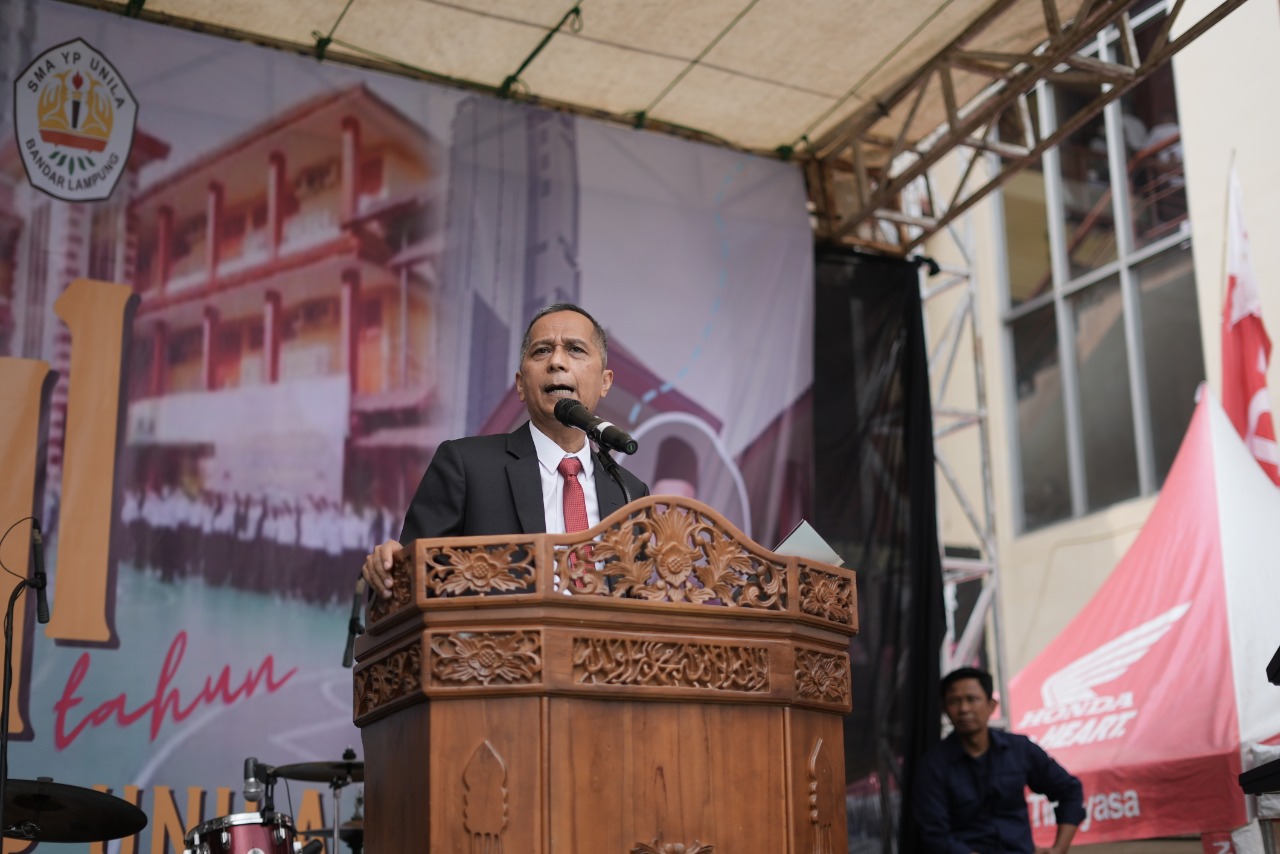Karomani juga mengucapkan selamat kepada alumni SMA YP Unila yang diterima di Universitas Lampung maupun universitas papan atas di pulau Jawa. “Saya turut berbangga, dalam dua tahun terakhir 60 siswa diterima jalur SNMPTN di berbagai universitas, dan tiap tahun ada siswa yang masuk ke fakultas kedokteran,” katanya.