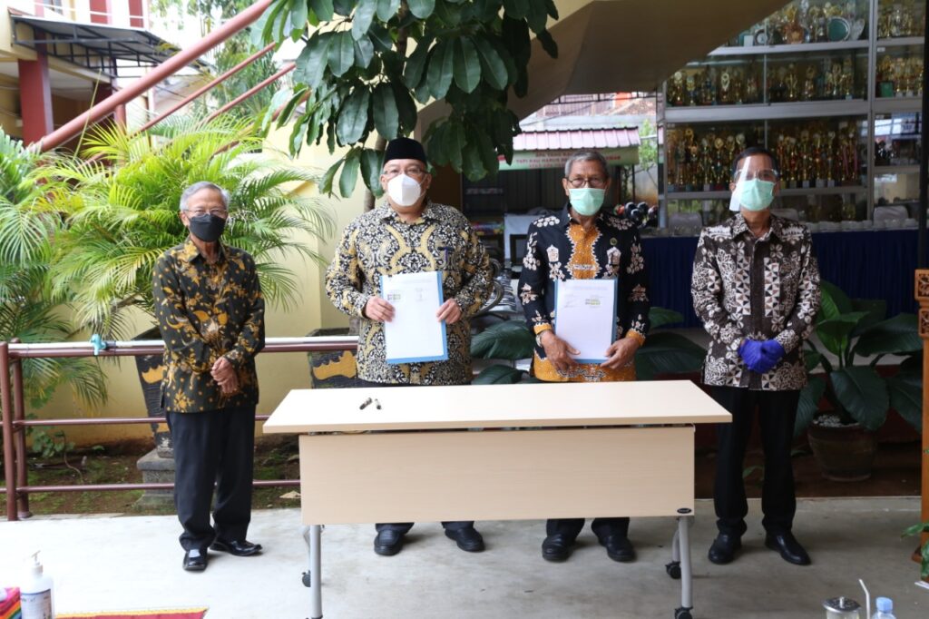 (Unila): Rektor Universitas Lampung (Unila) Prof. Dr. Karomani, M.Si., selaku Ketua Pembina Yayasan Pendidikan (YP) Unila menyaksikan acara serah terima aset Yayasan Pendidikan Unila, Jumat, 8 Januari 2021.