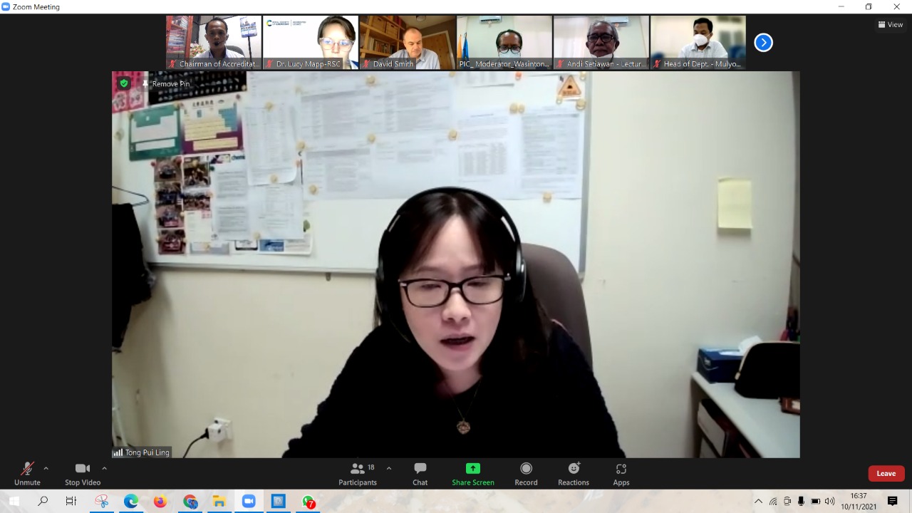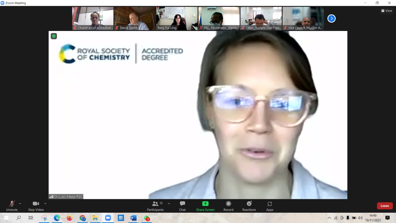 Pada visitasi akreditasi yang diselenggarakan secara daring ini, Lembaga Internasional RSC menugaskan Prof. David Smith (The University of York) dan Dr. Angela Pui Ling Tong (The University of Hong Kong) sebagai asesor, serta Dr. Lucy Mapp dari RSC sebagai fasilitator.