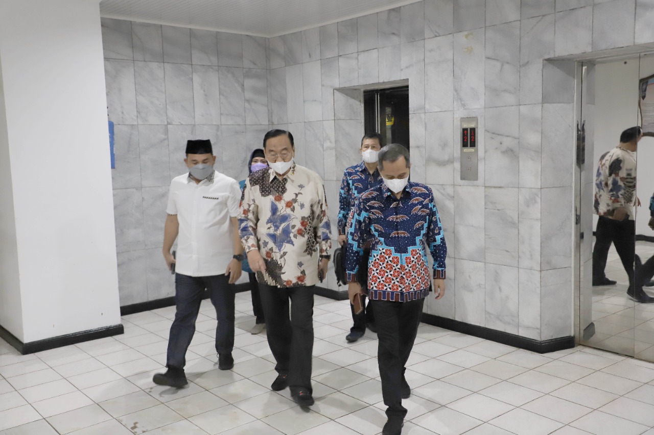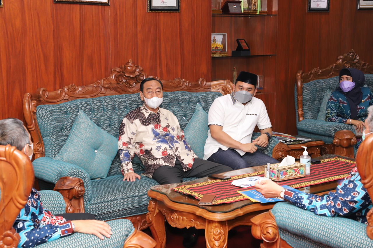 (Unila): Rektor Universitas Lampung (Unila) Prof. Karomani, M.Si., didampingi wakil rektor bidang akademik dan wakil rektor bidang PKTIK menerima audiensi Anggota Dewan Perwakilan Rakyat RI Drs. Tamanuri, M.M., di ruang kerja, Jumat, 22 April 2022. []