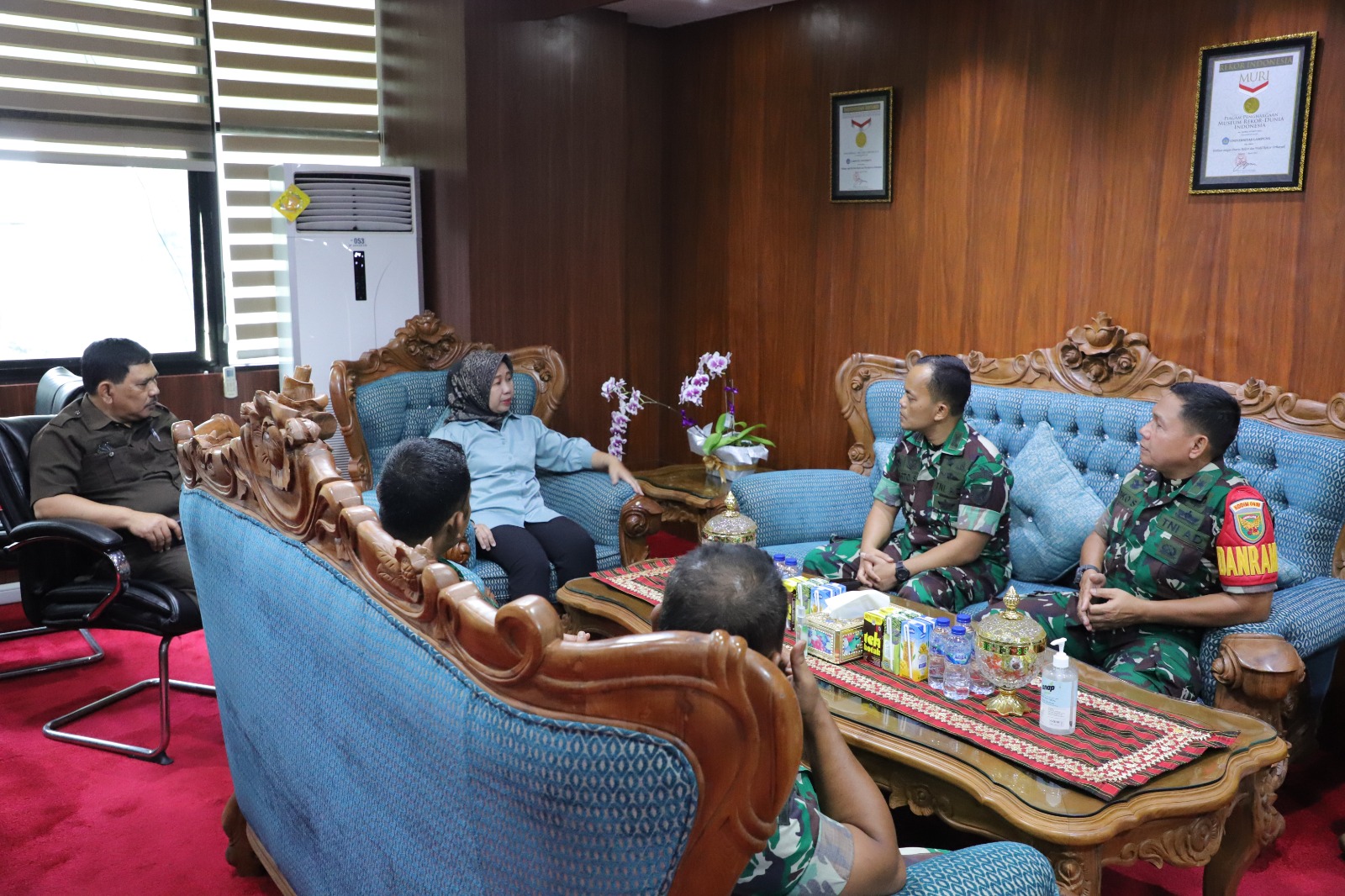 (Unila): Rektor Universitas Lampung (Unila) Prof. Dr. Ir. Lusmeilia Afriani, D.E.A., I.P.M., menerima kehadiran Komandan Komando Distrik Militer (Dandim) 0410 Garuda Hitam (Gatam) Letkol Arm. Tri Arto Subagio beserta jajaran di ruang kerja rektor, Selasa, 31 Januari 2023. []